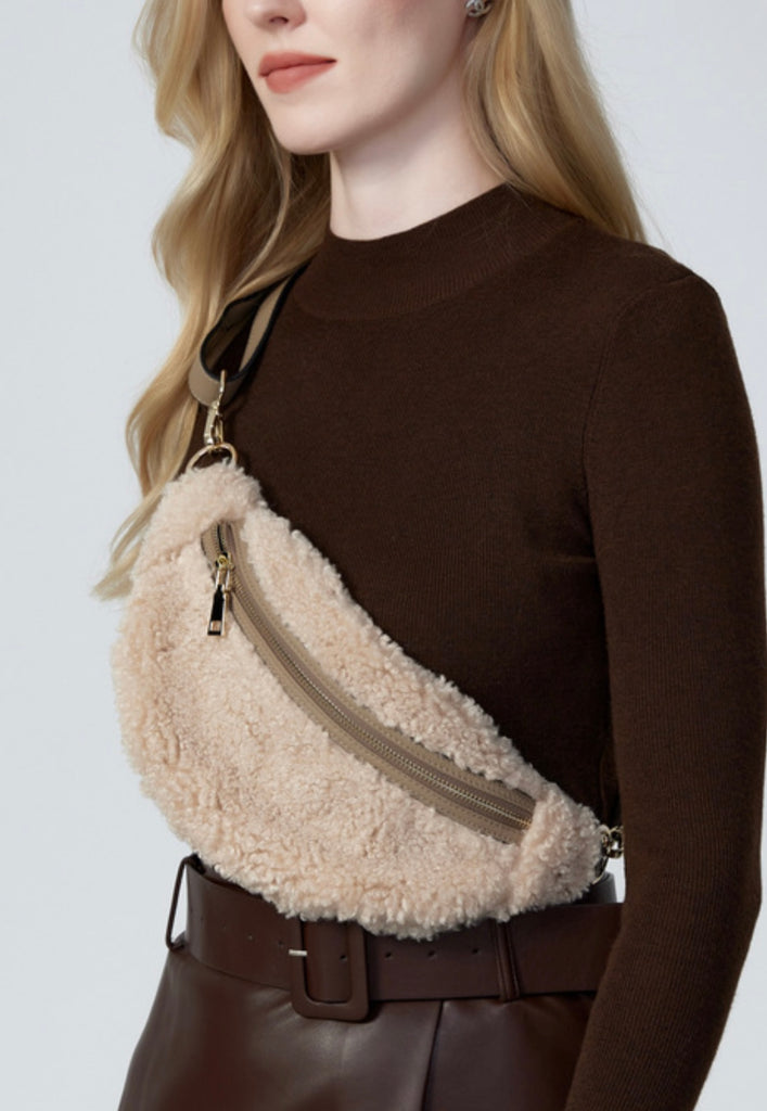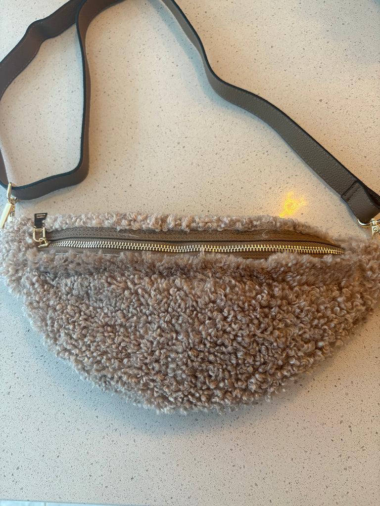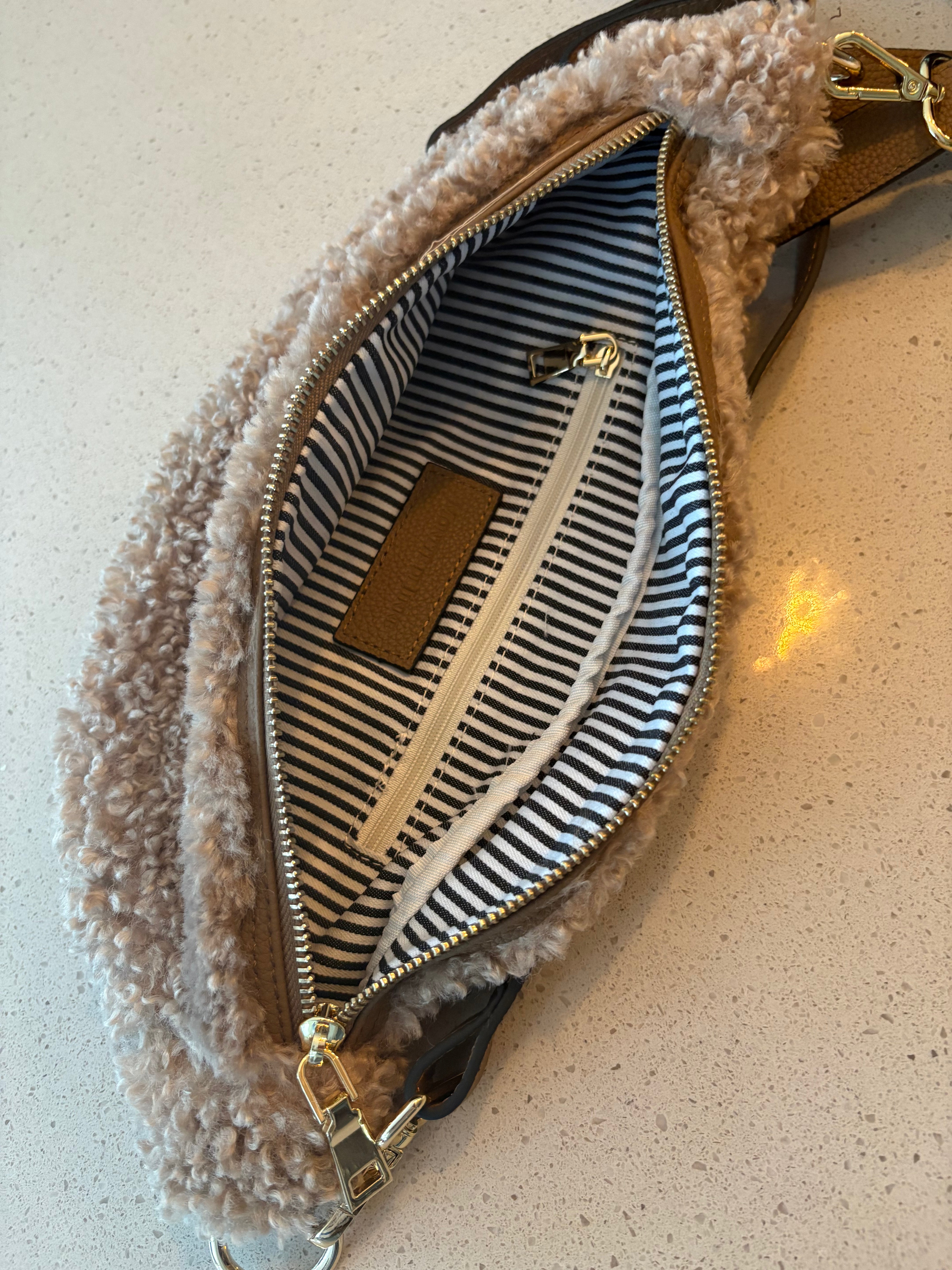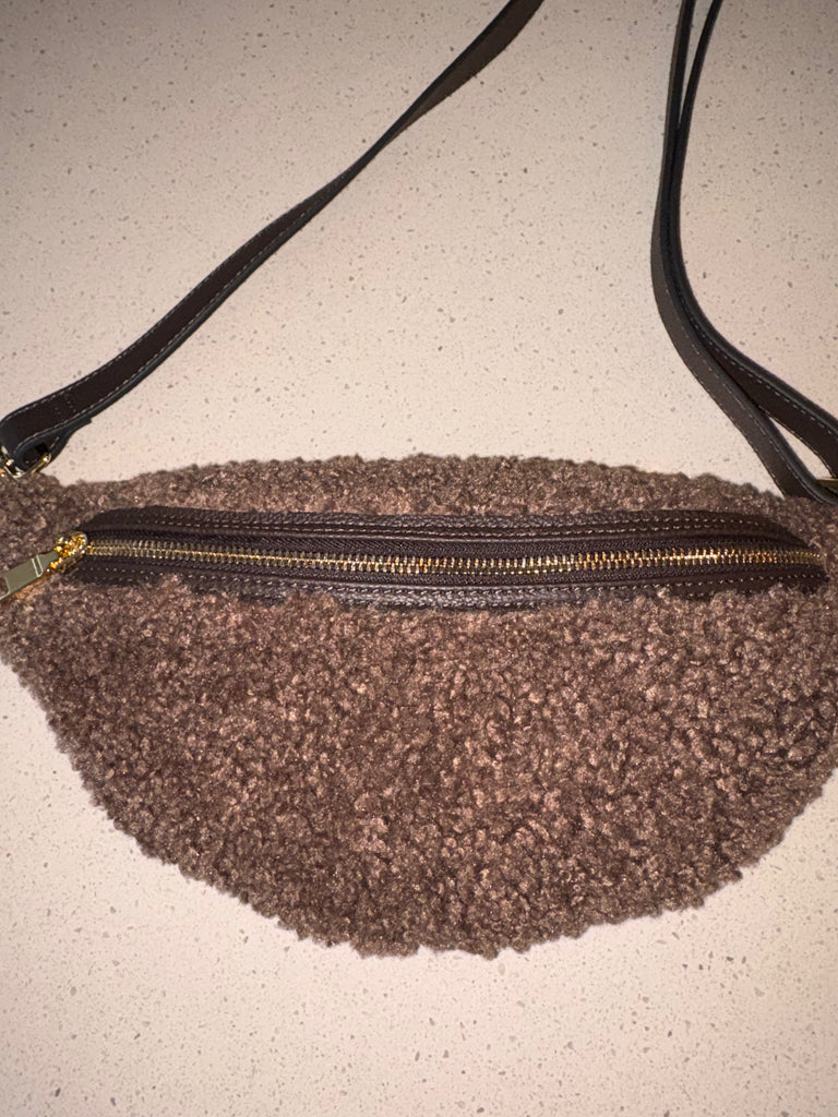 A mid sized cross body bag, genuine leather and faux sharling with gold hardware. A useful and stylish casual accessory. In two colours, dark taupe and chocolate.