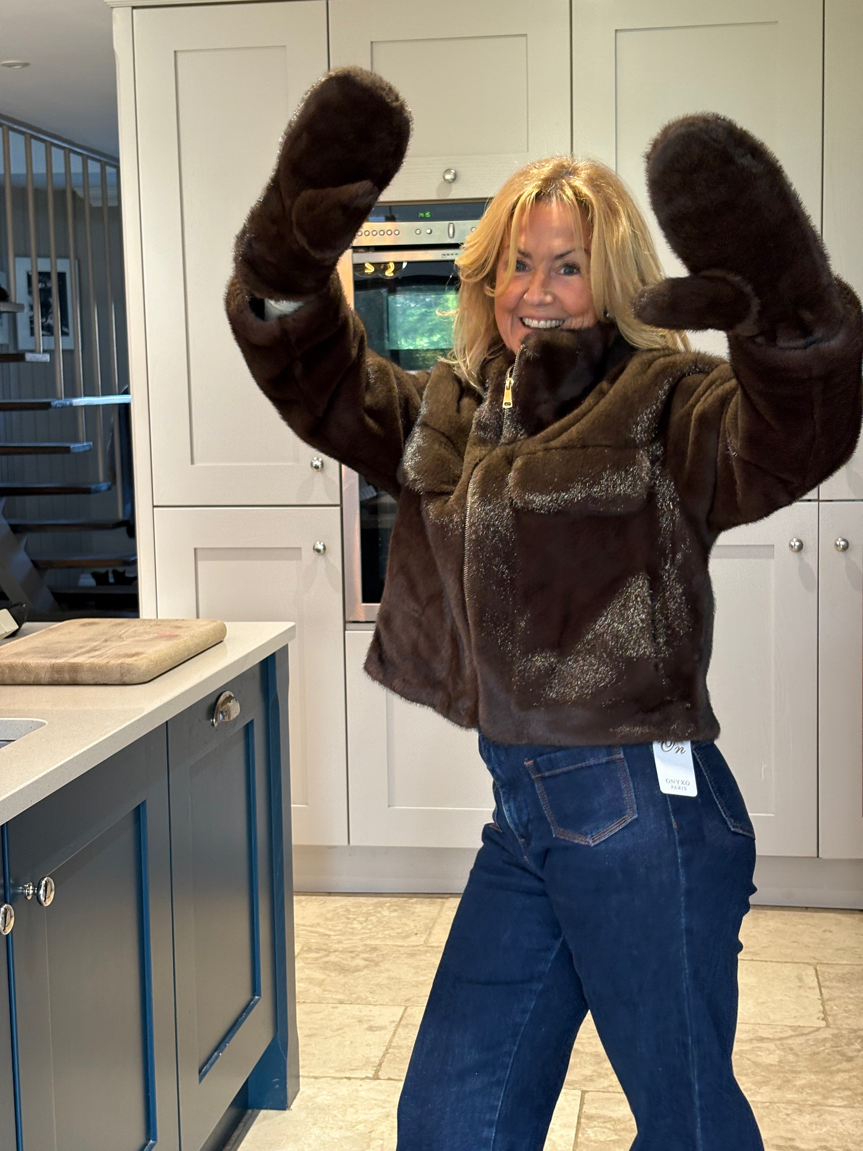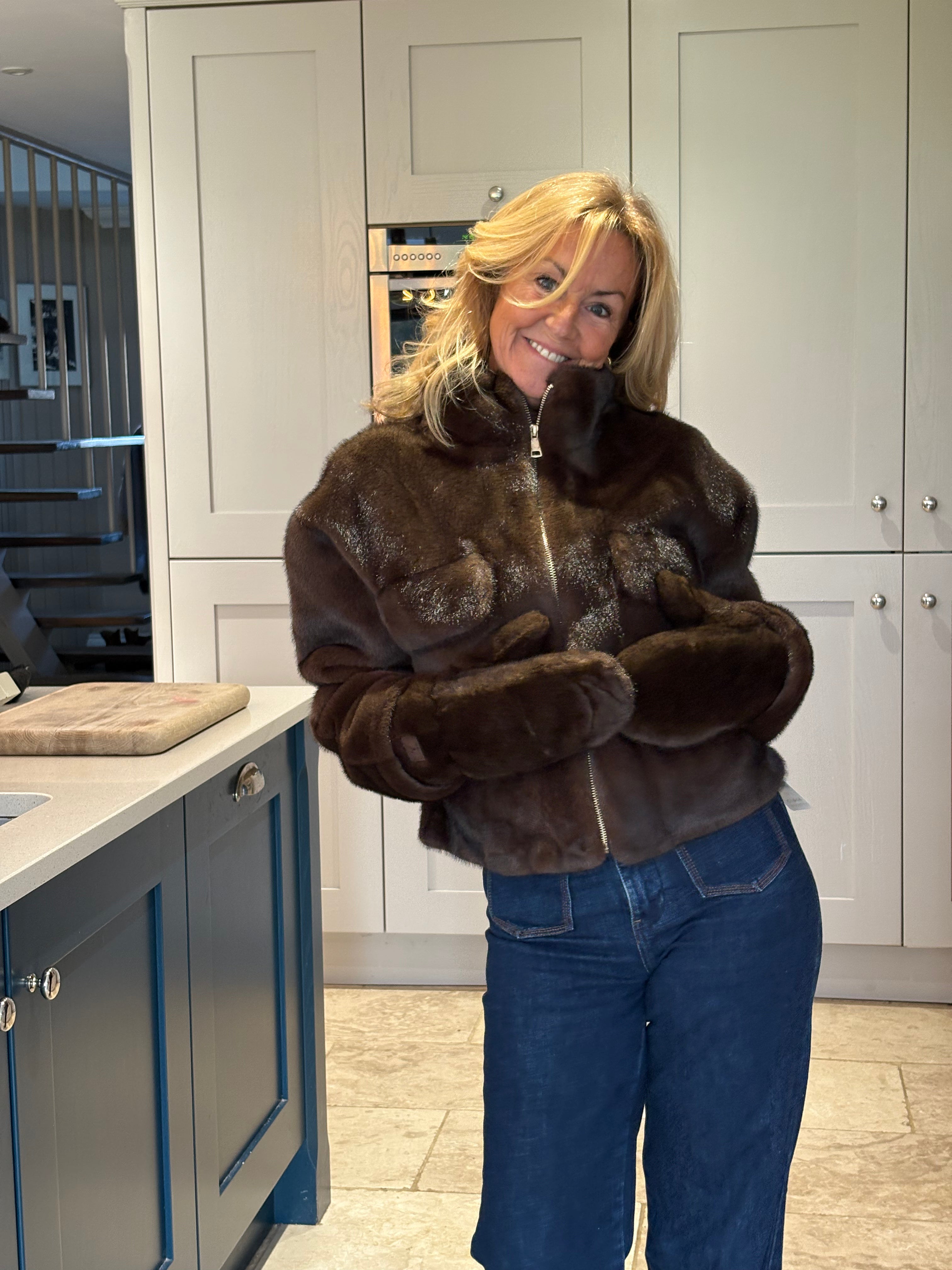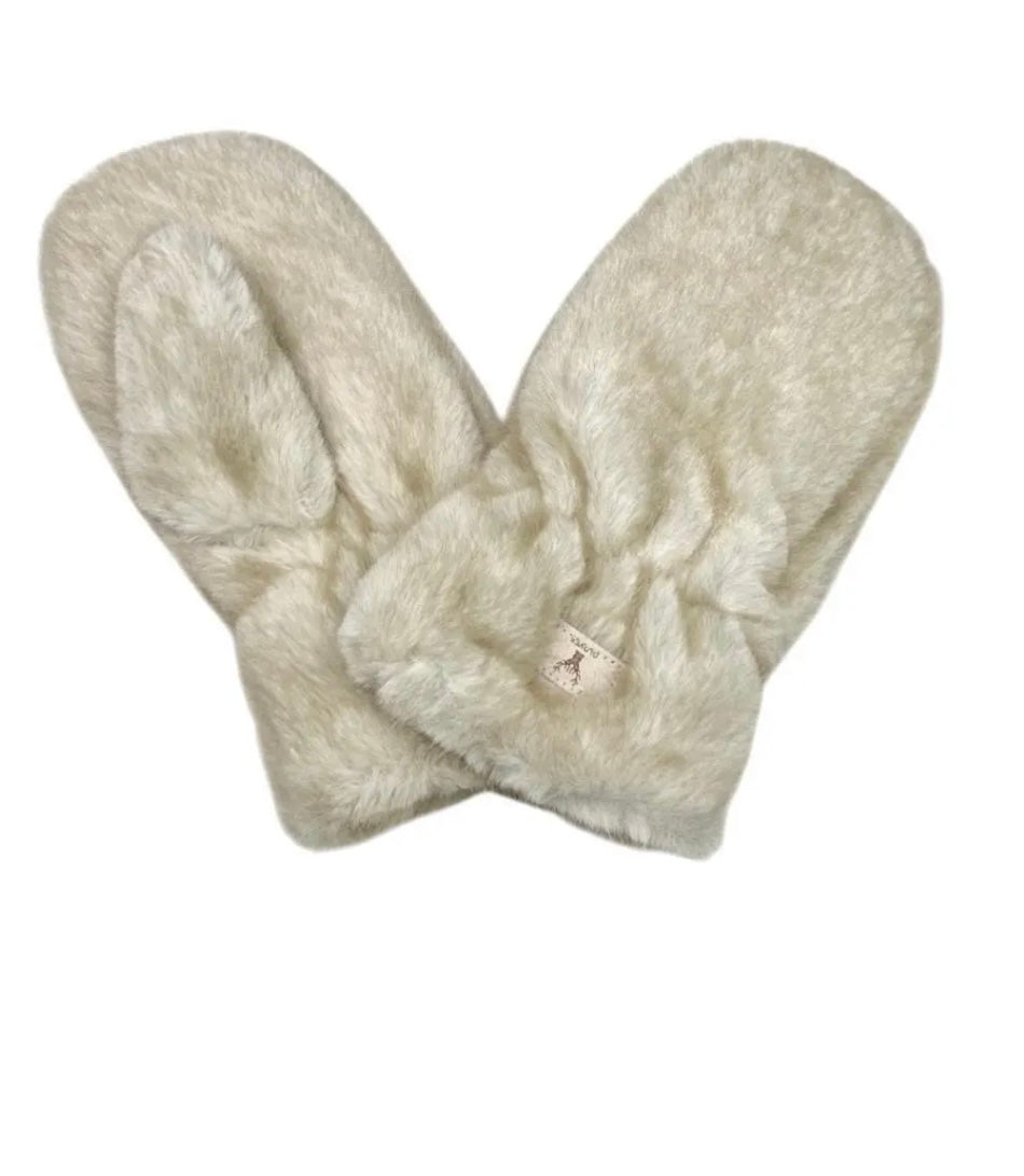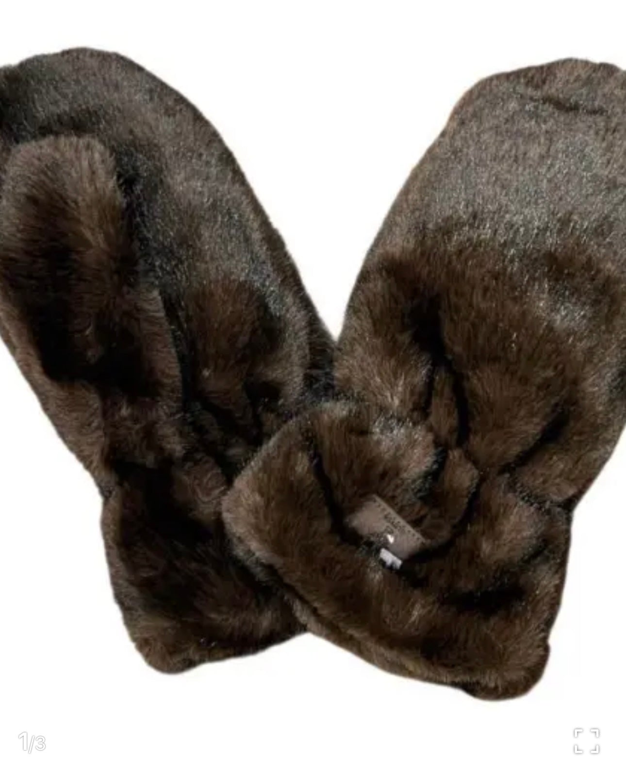 A really beautiful and functional pair of faux fur mittens with a snuggly fleece lining.