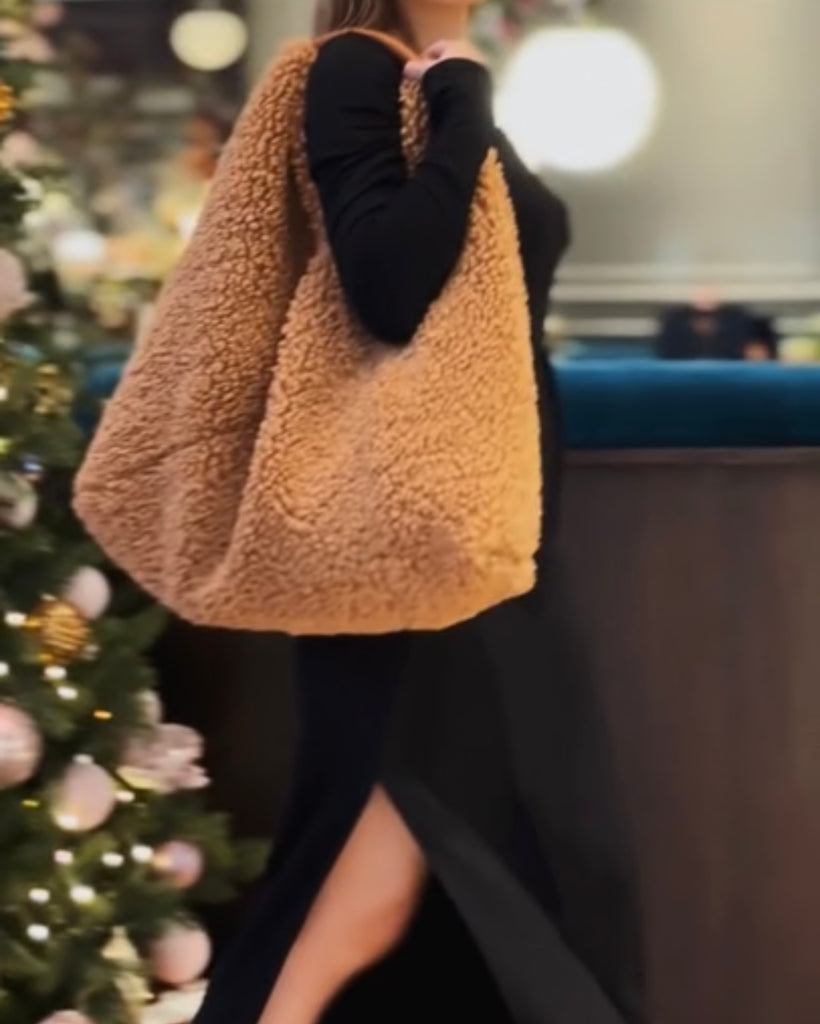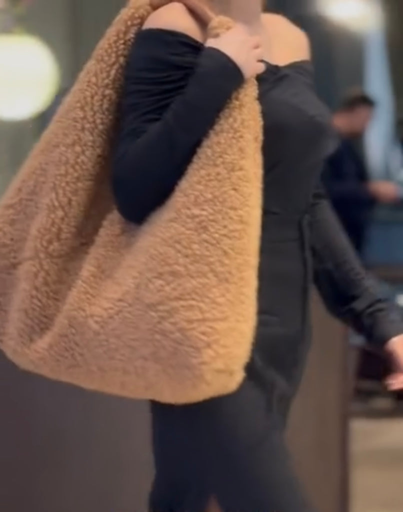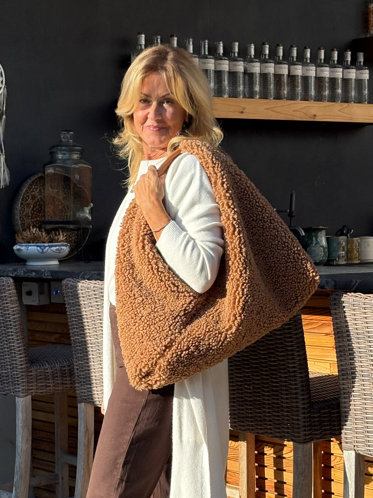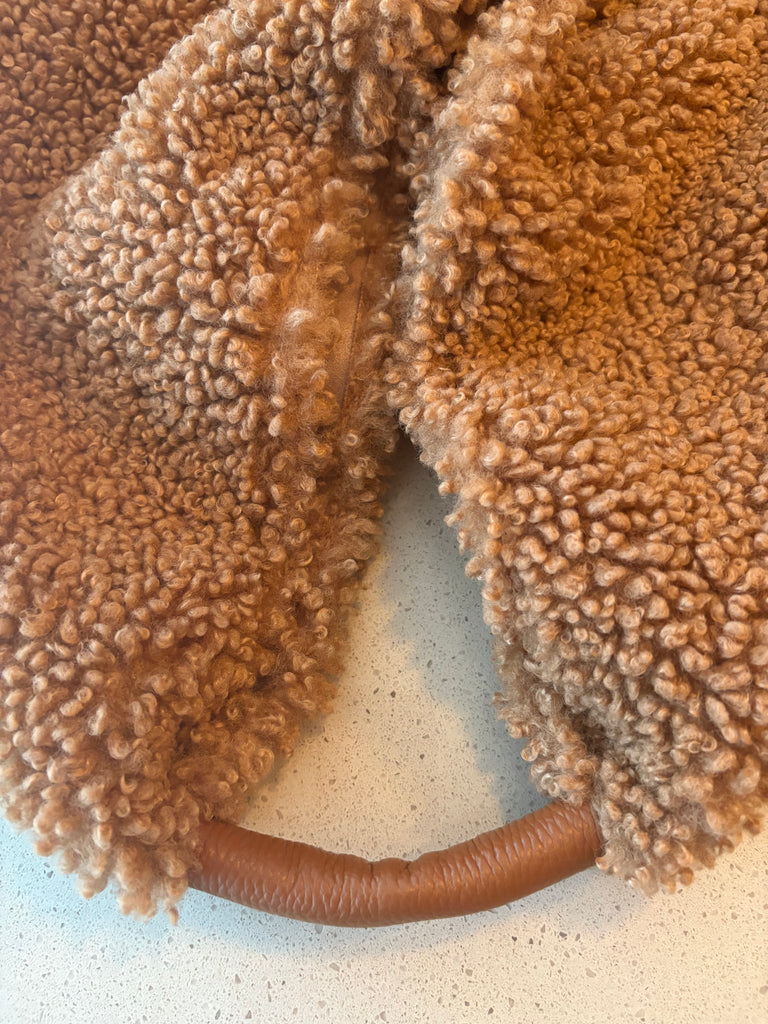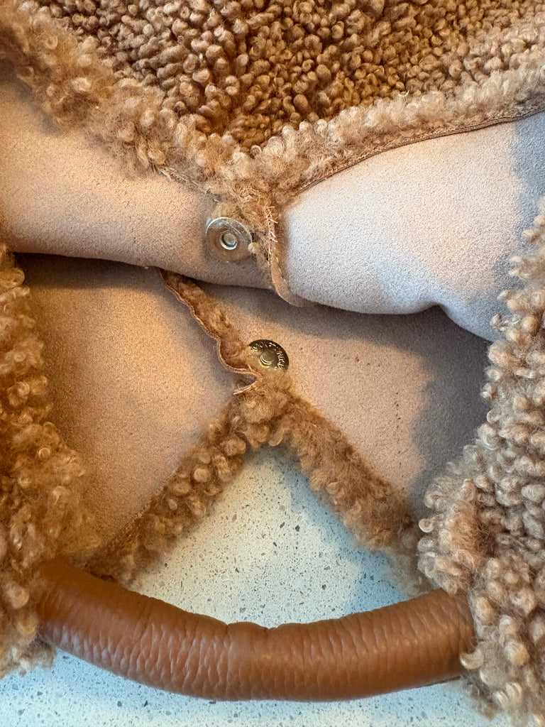 A gorgeous big and soft faux Sherpa bag with genuine leather strap and gold hardware