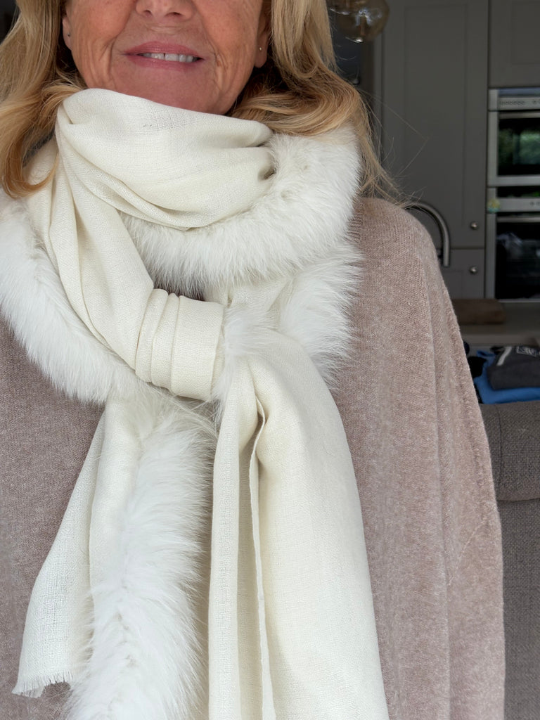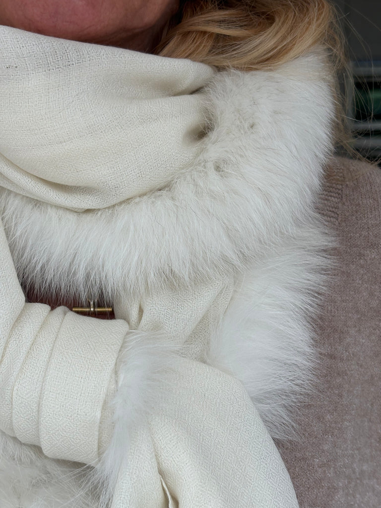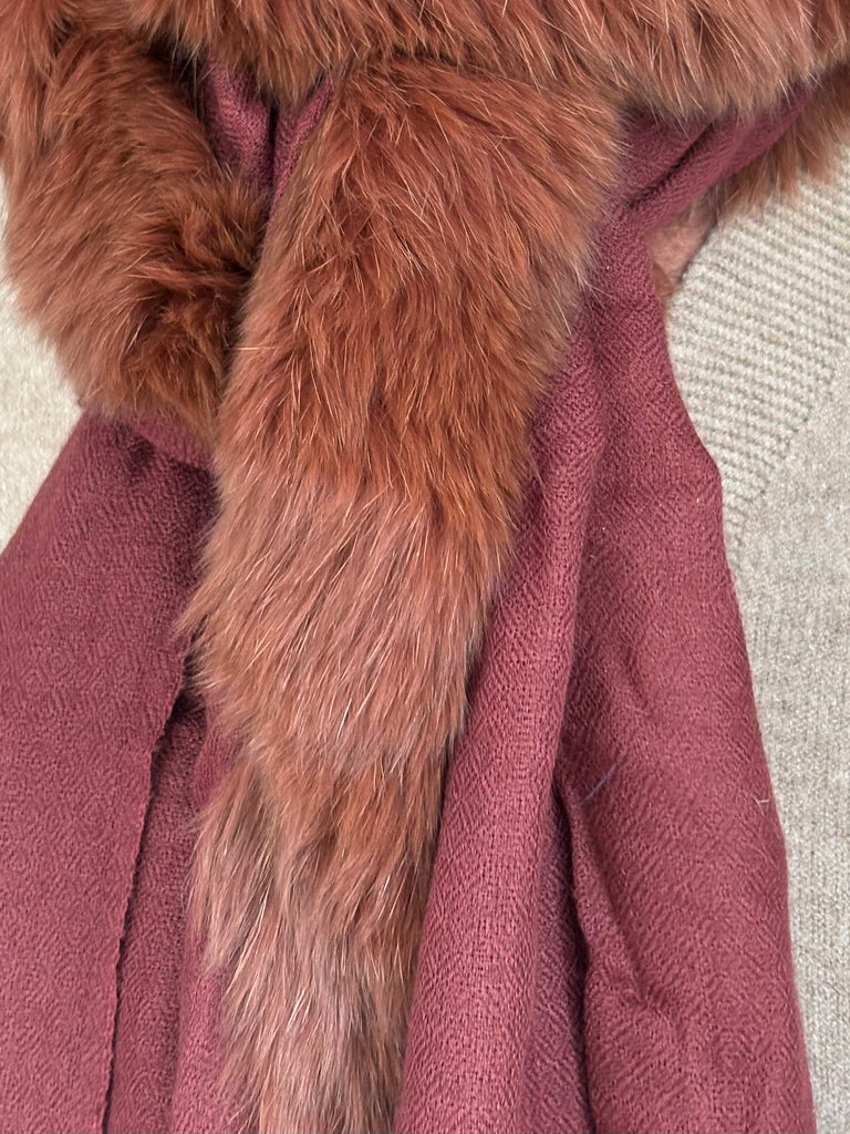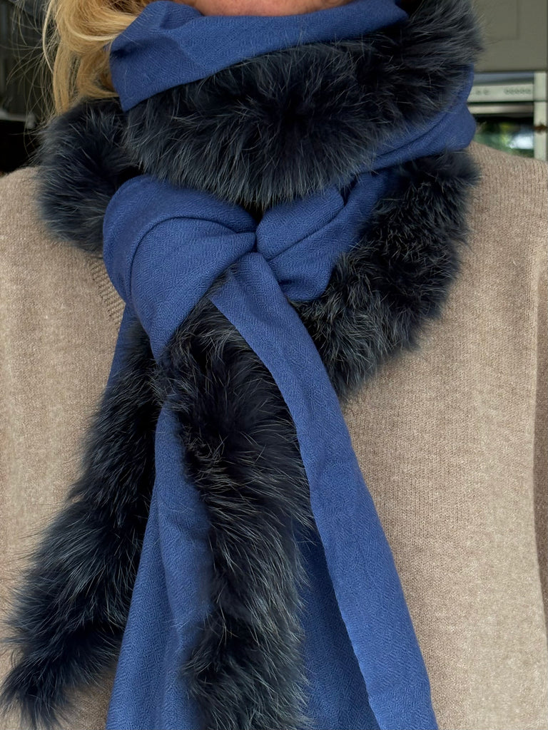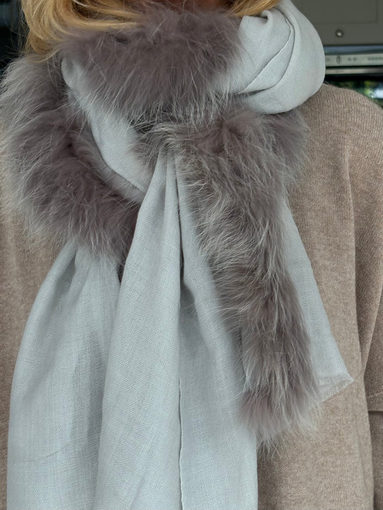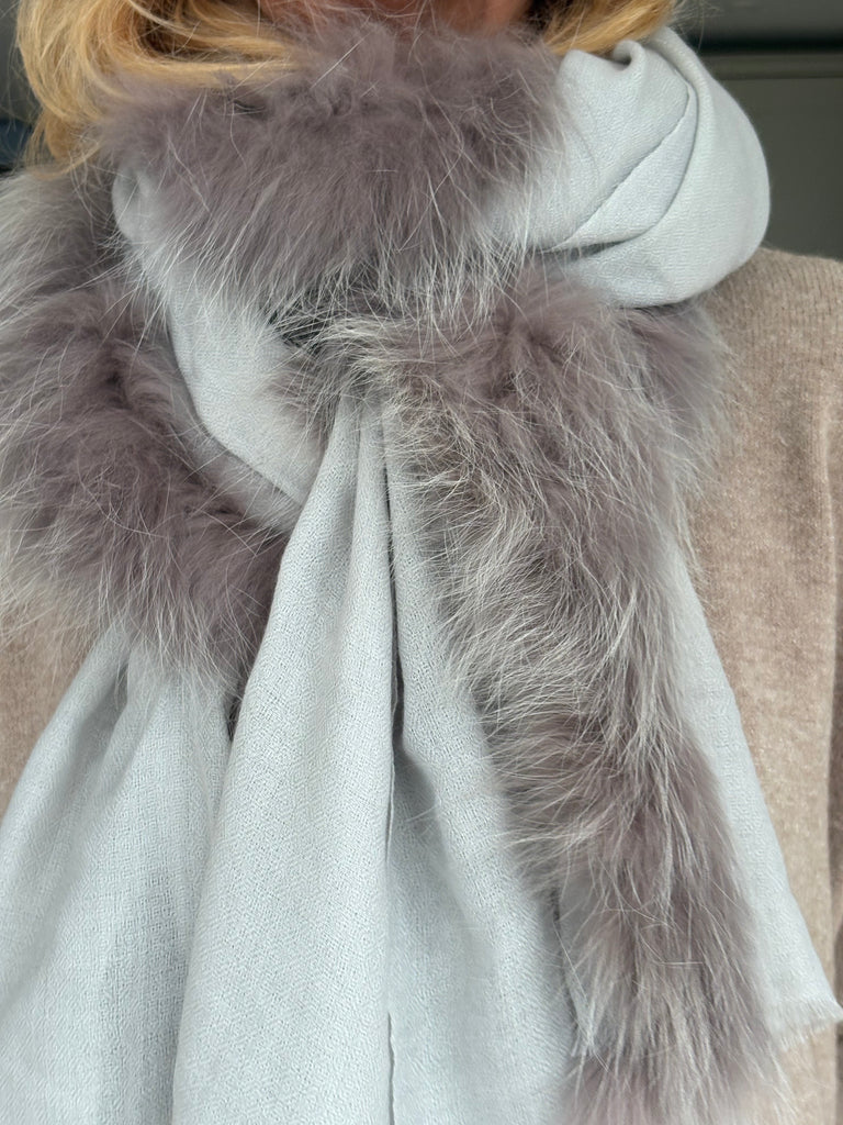 Fine Woven Cashmere Scarf with recycled fox and wool fur trim on one side