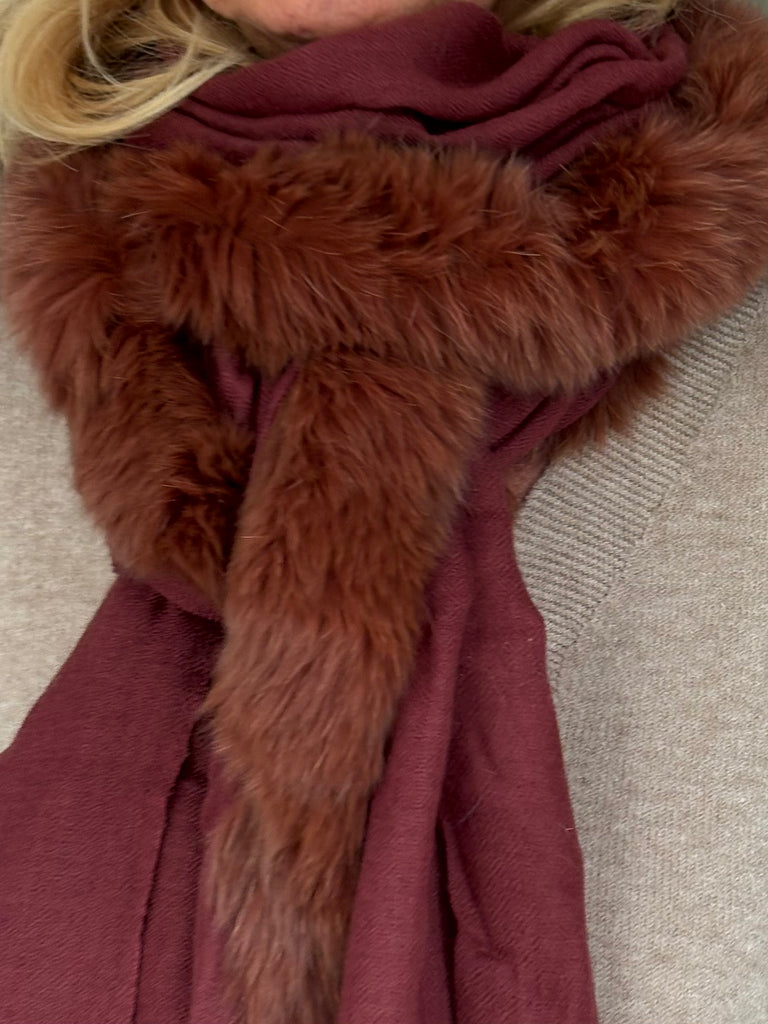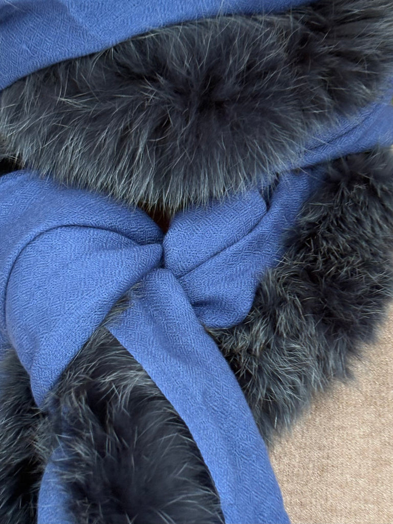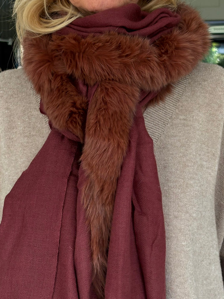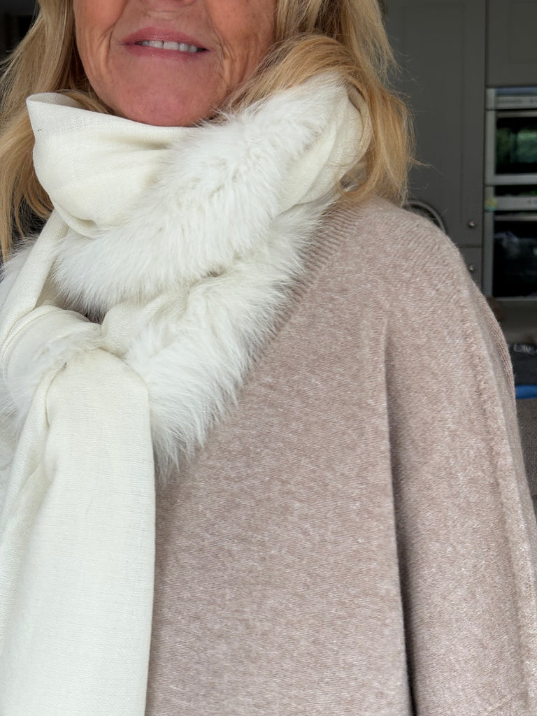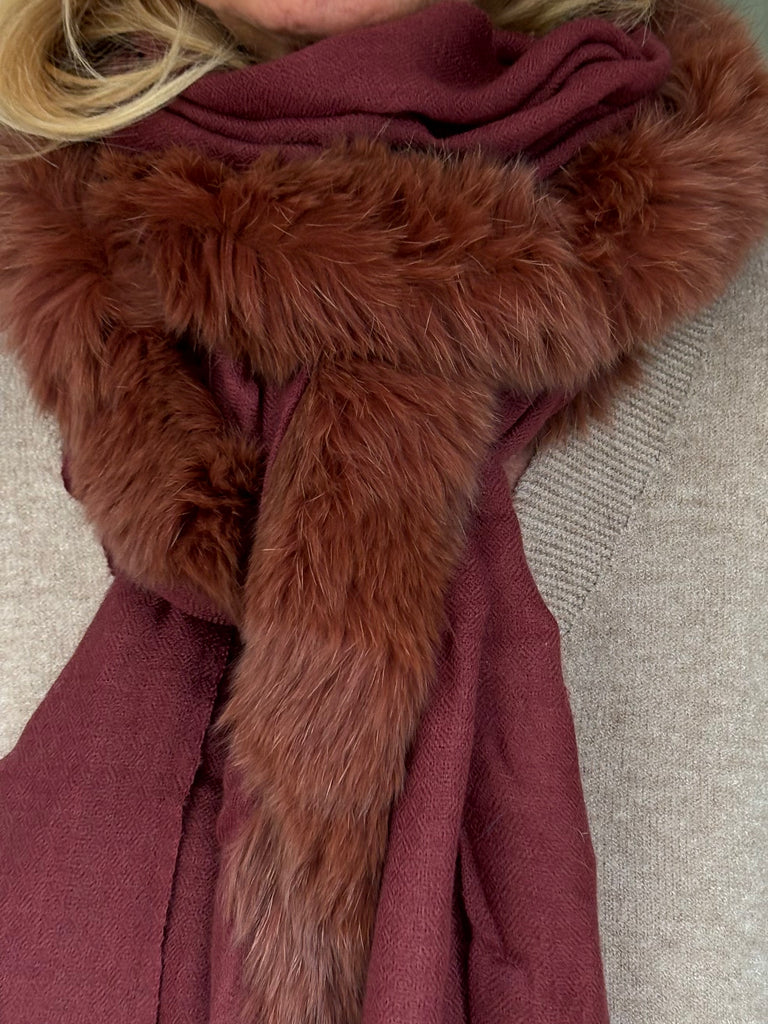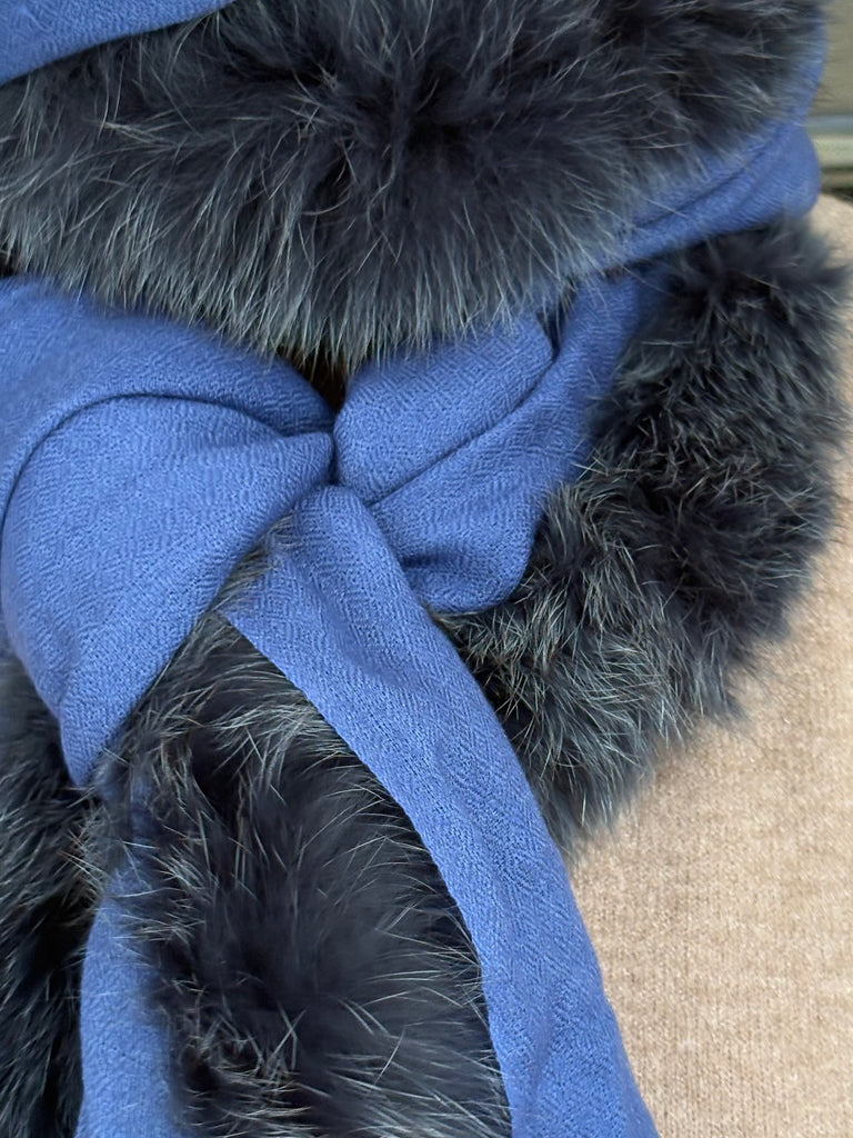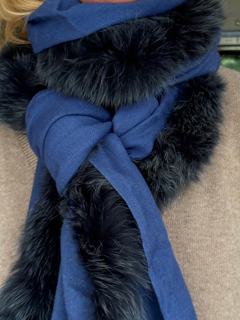 Fine Woven Cashmere Scarf with recycled fox and wool fur trim on one side