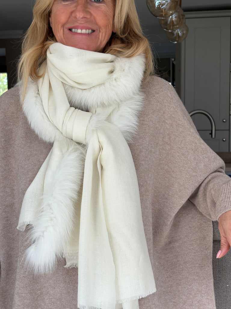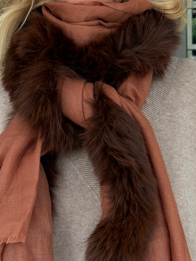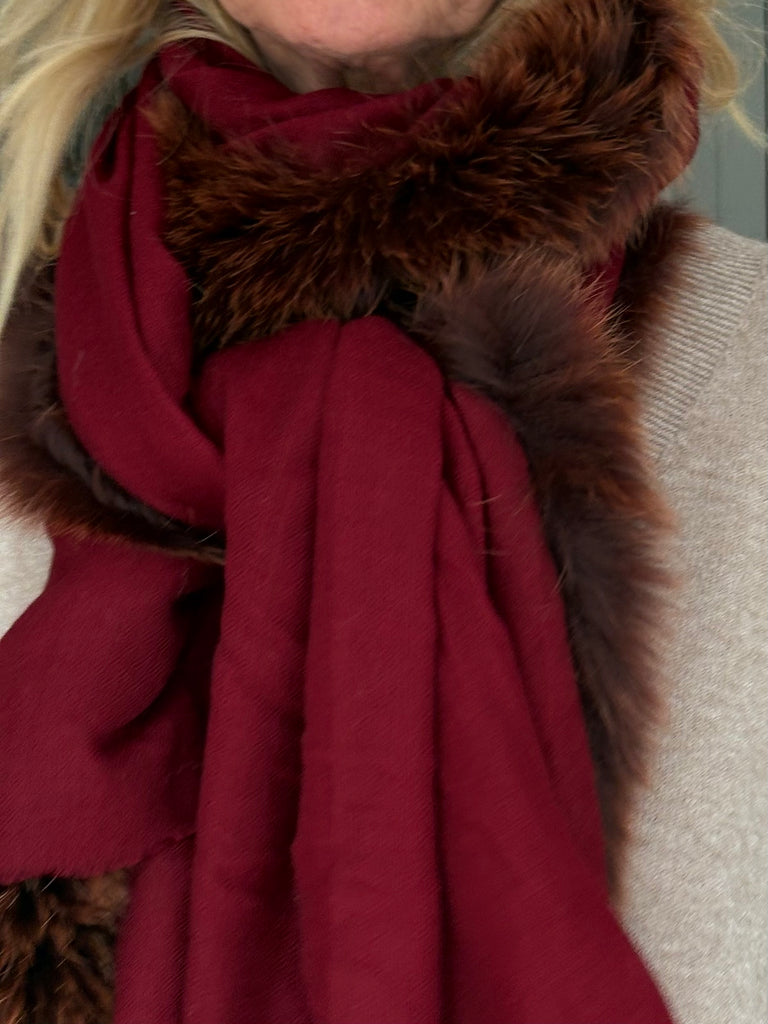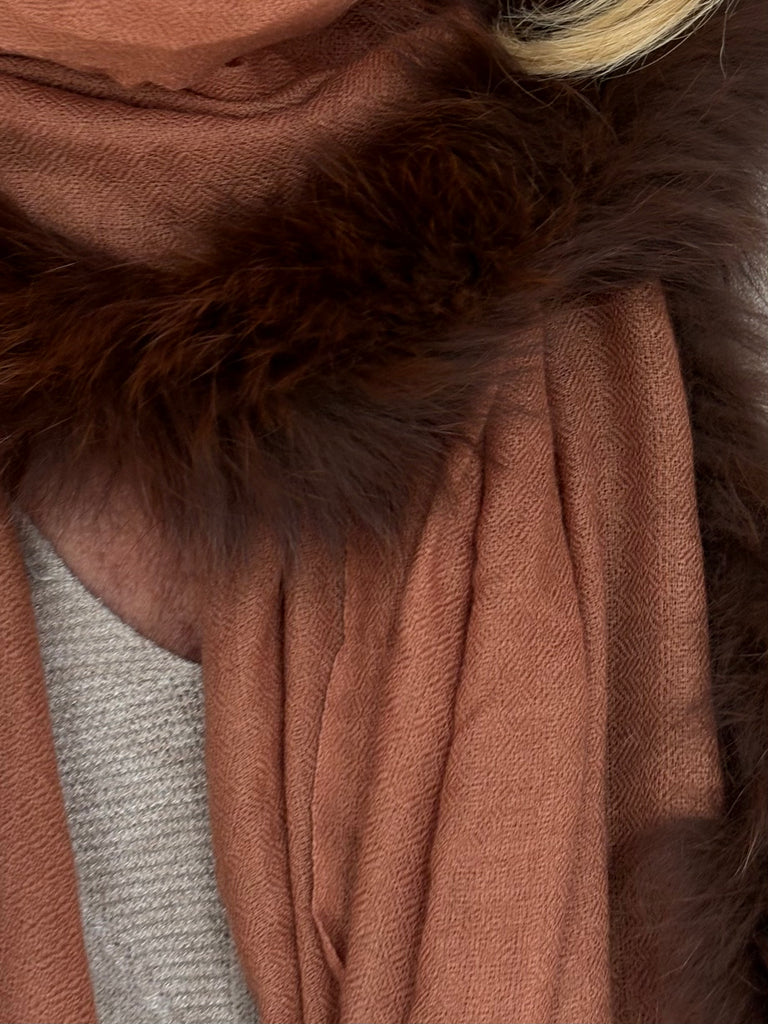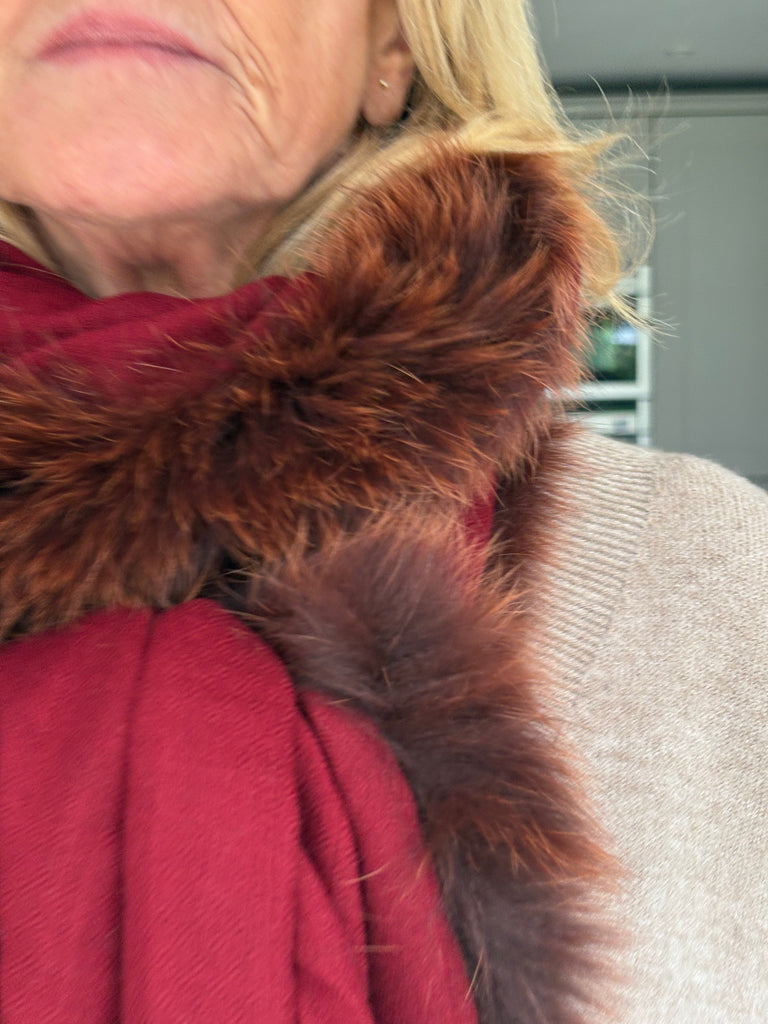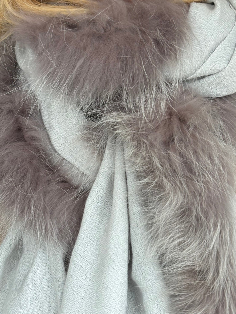 Fine Woven Cashmere Scarf with recycled fox and wool fur trim on one side
