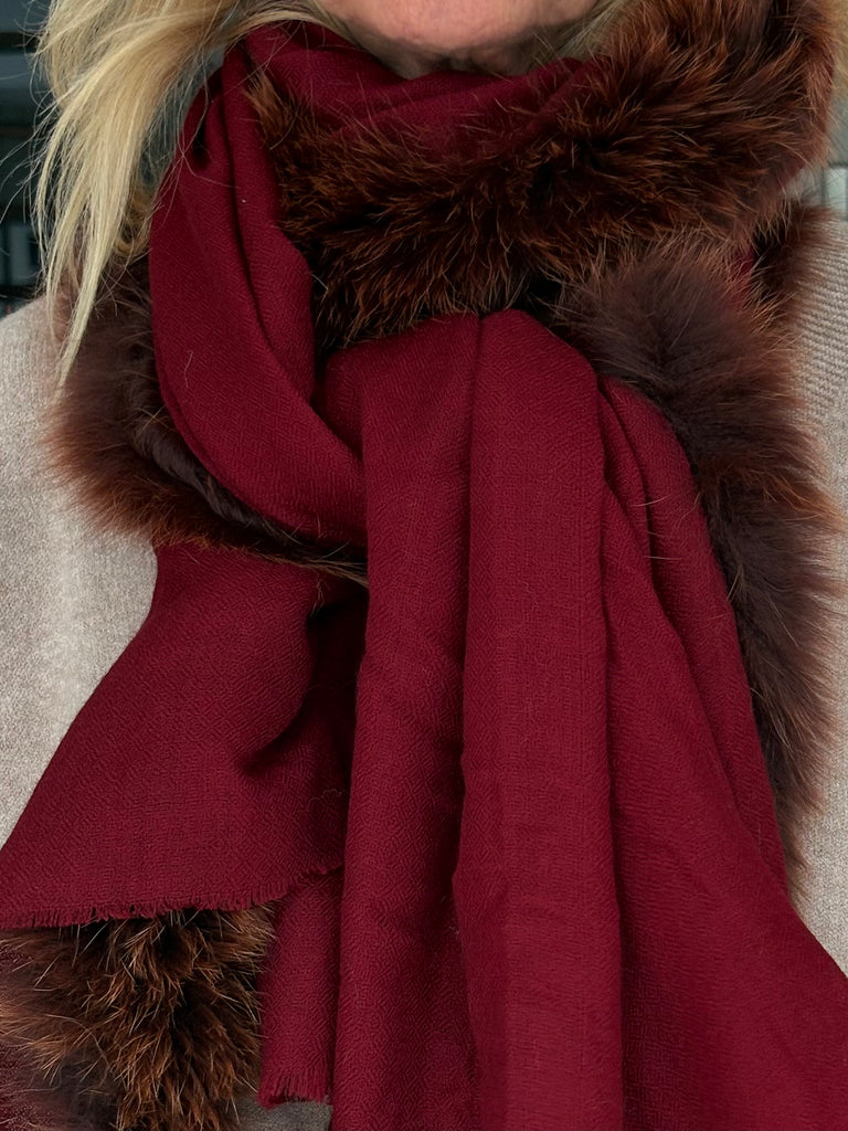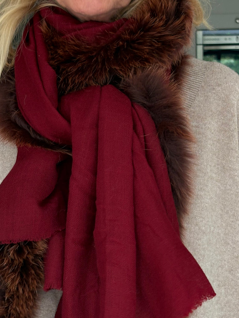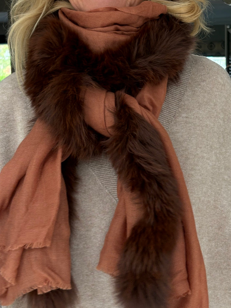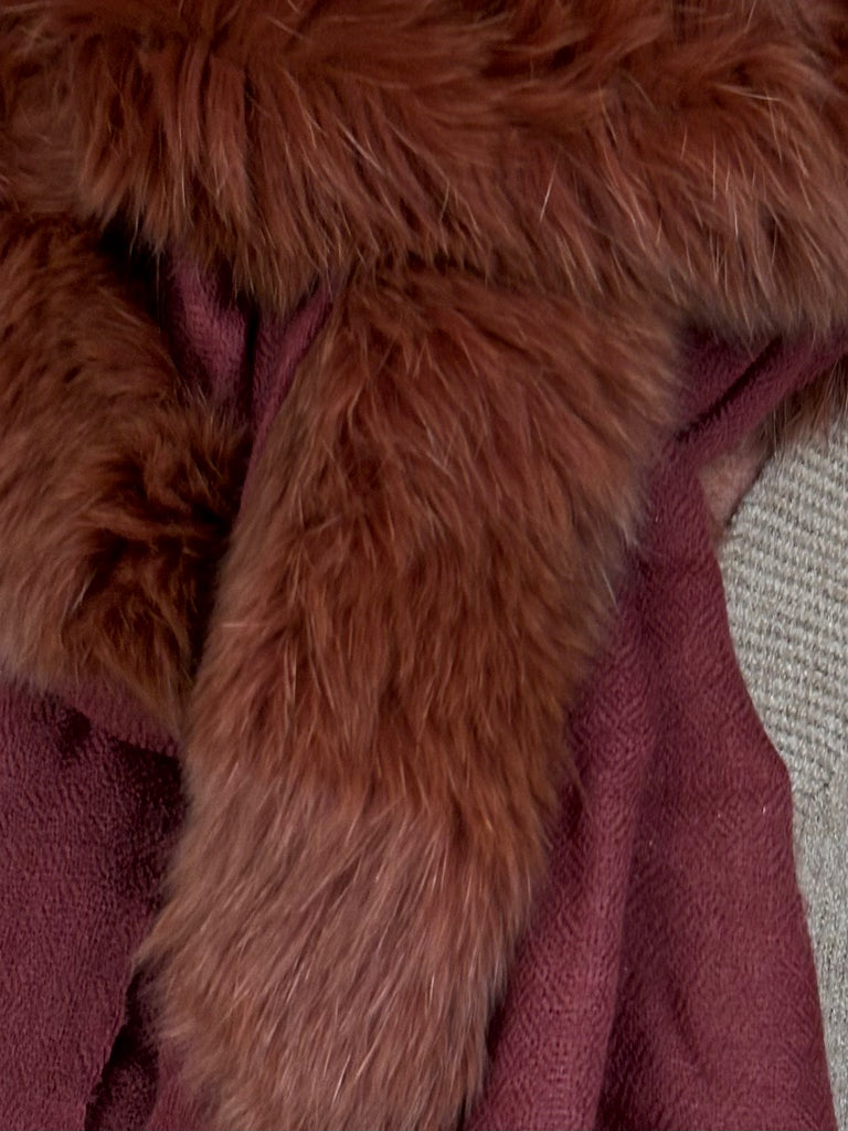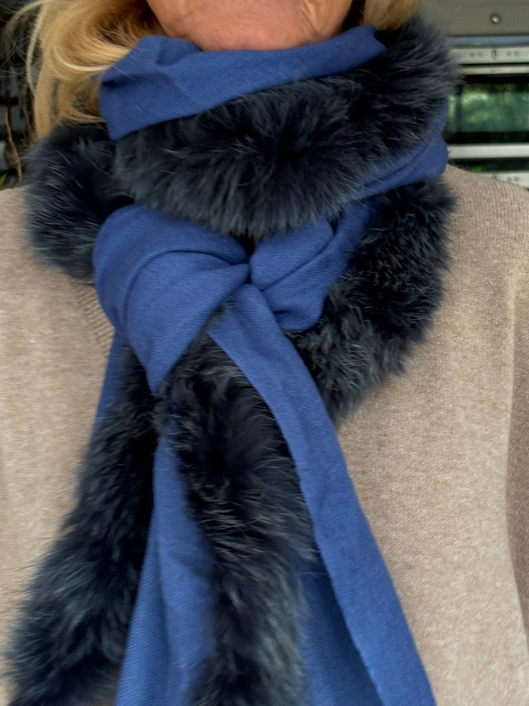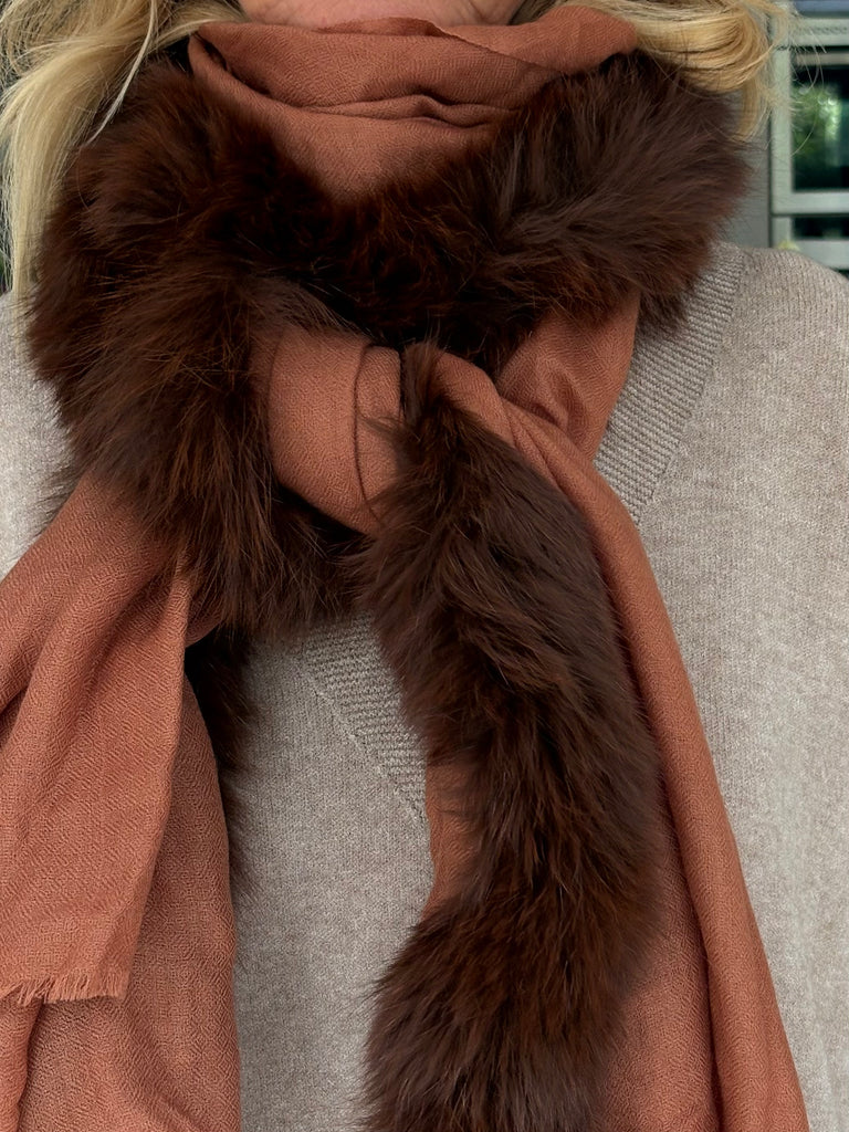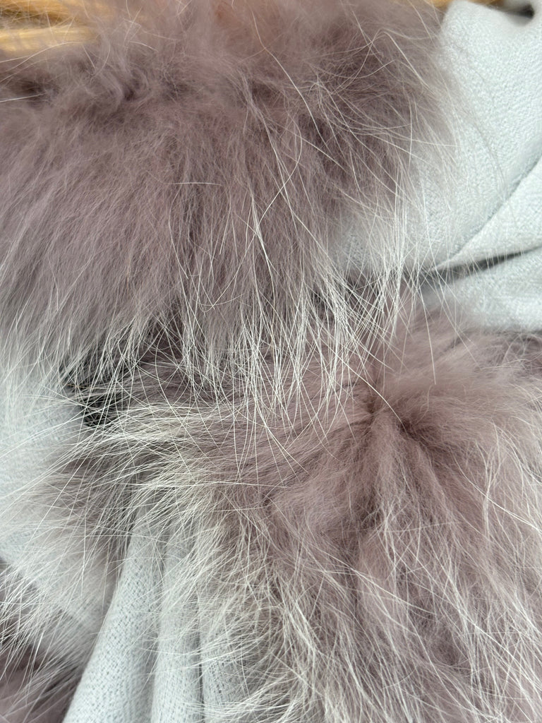 Fine Woven Cashmere Scarf with recycled fox and wool fur trim on one side