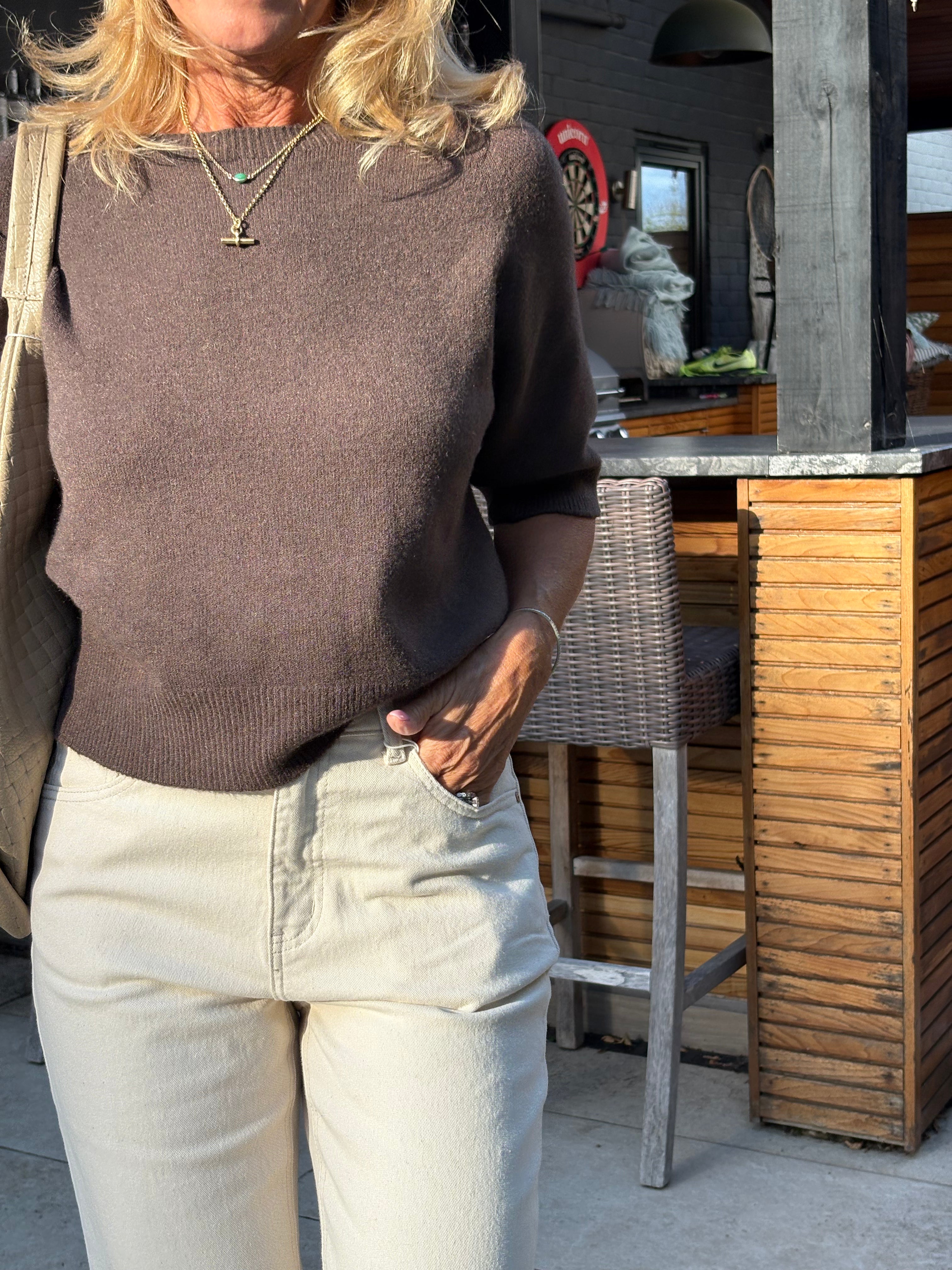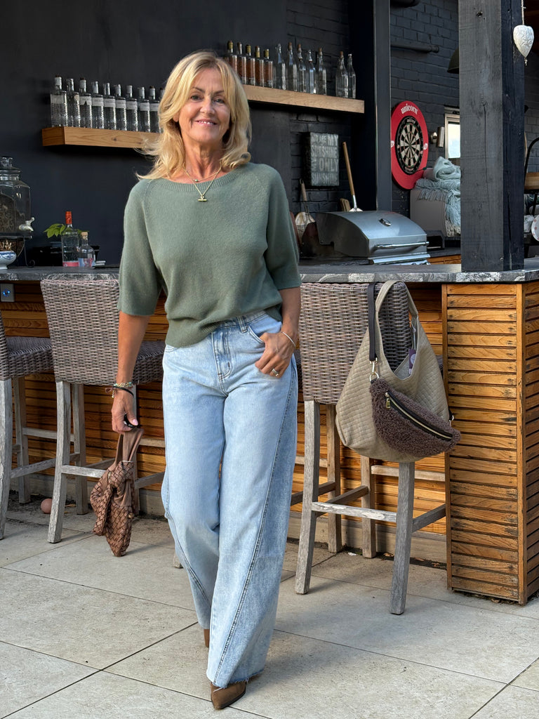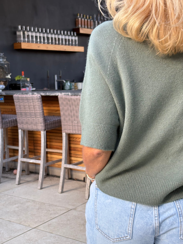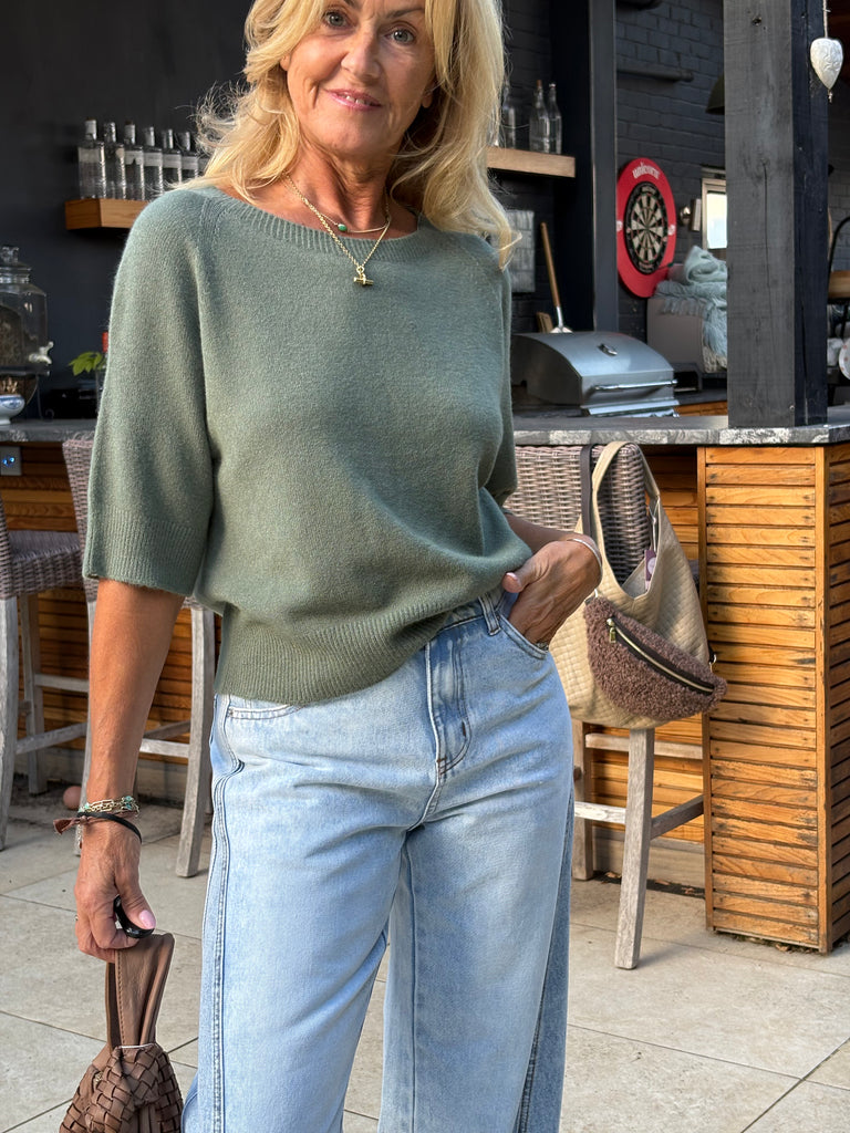 The Estee jumper is a beautiful, one size jumper with half length sleeves, subtly puffed, a wide crew neckline and falls loosely to just below waist length. Beautifully soft and fluid. The perfect jumper for all year round.