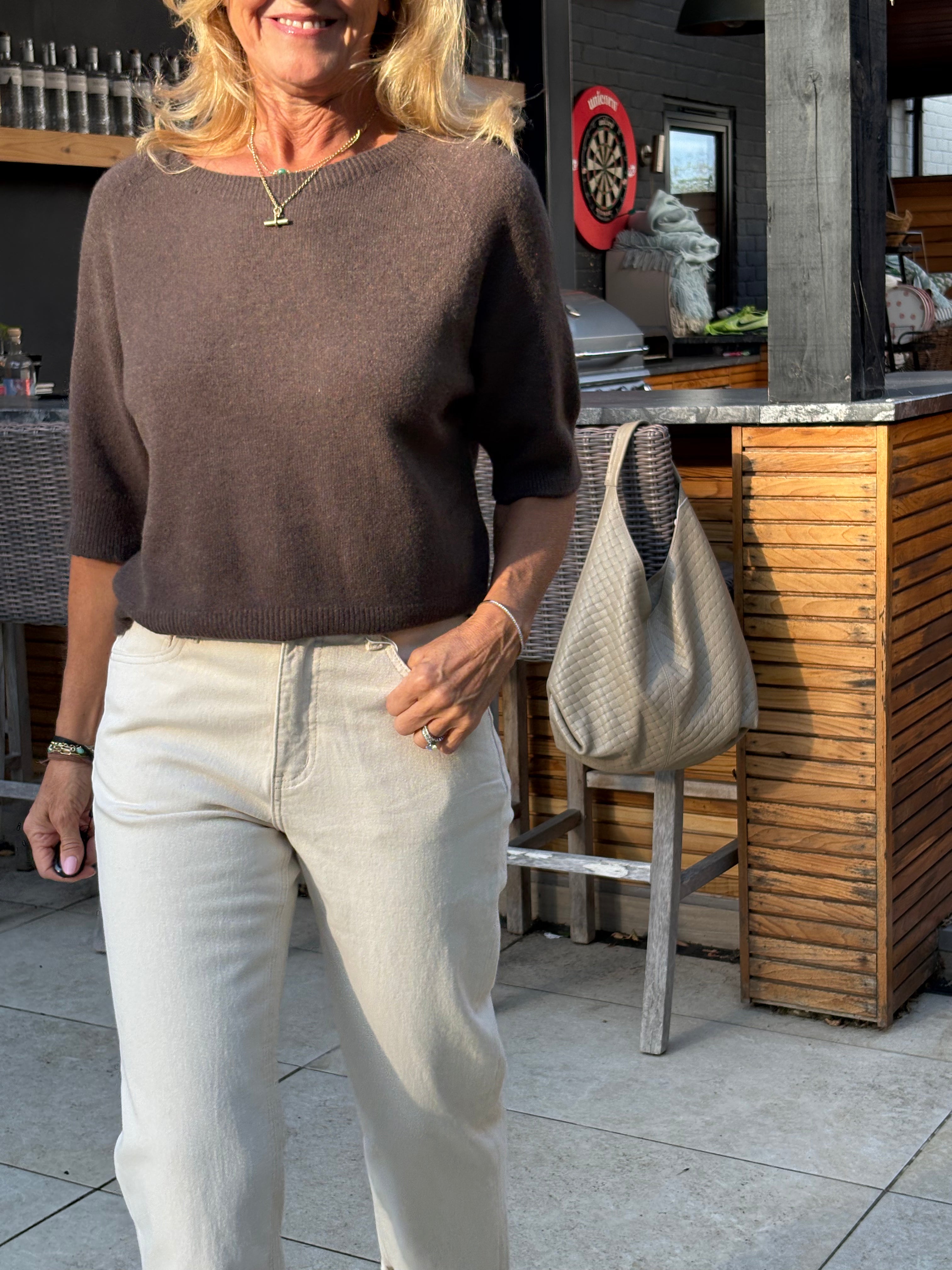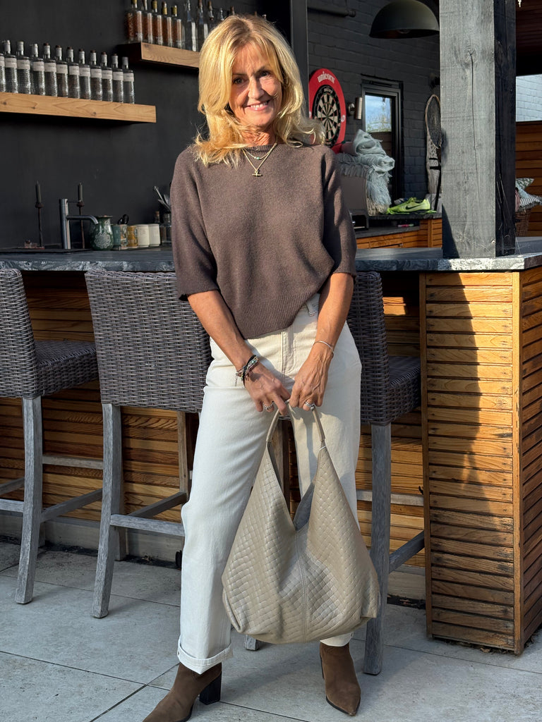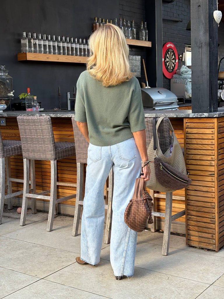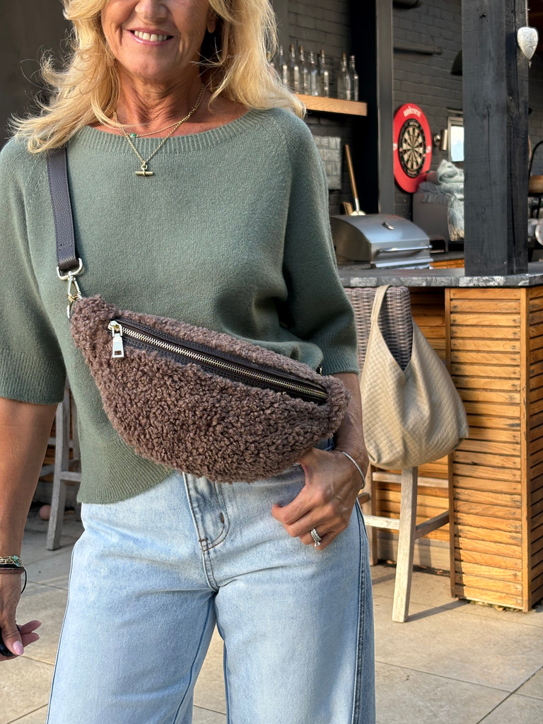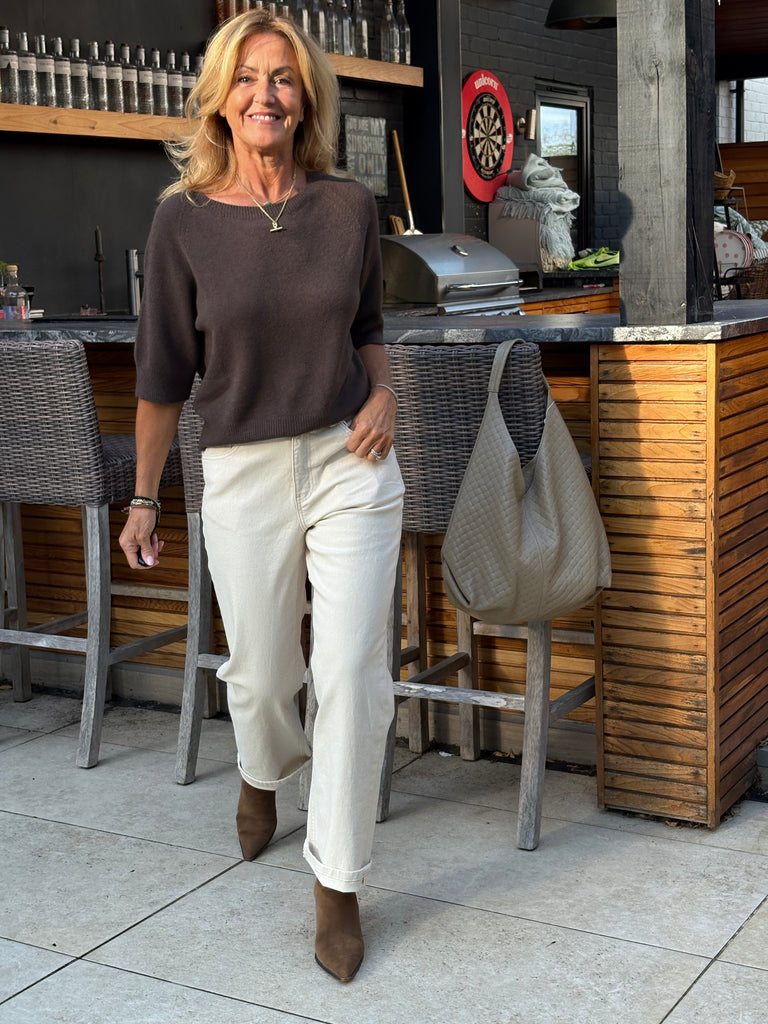 The Estee jumper is a beautiful, one size jumper with half length sleeves, subtly puffed, a wide crew neckline and falls loosely to just below waist length. Beautifully soft and fluid. The perfect jumper for all year round.