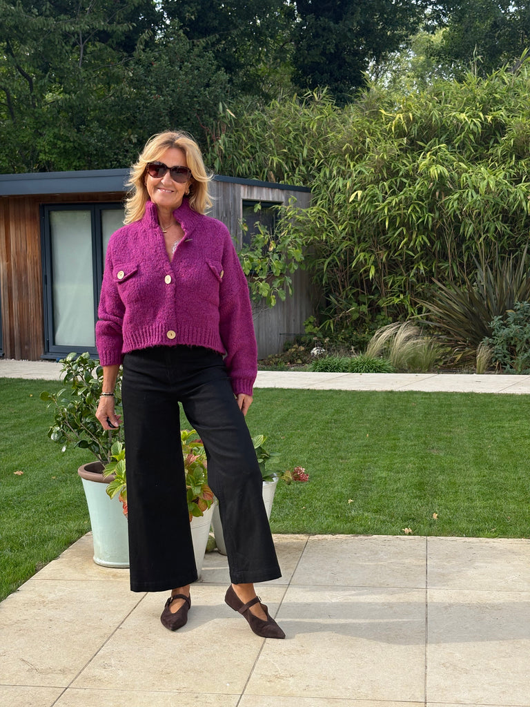 Designed in classic ecru, chocolate and mulberry this versatile piece is great for layering over a dress or pairing with high-waisted trousers and skirts. Effortlessly stylish and incredibly snug, it’s a must-have addition to your winter wardrobe.