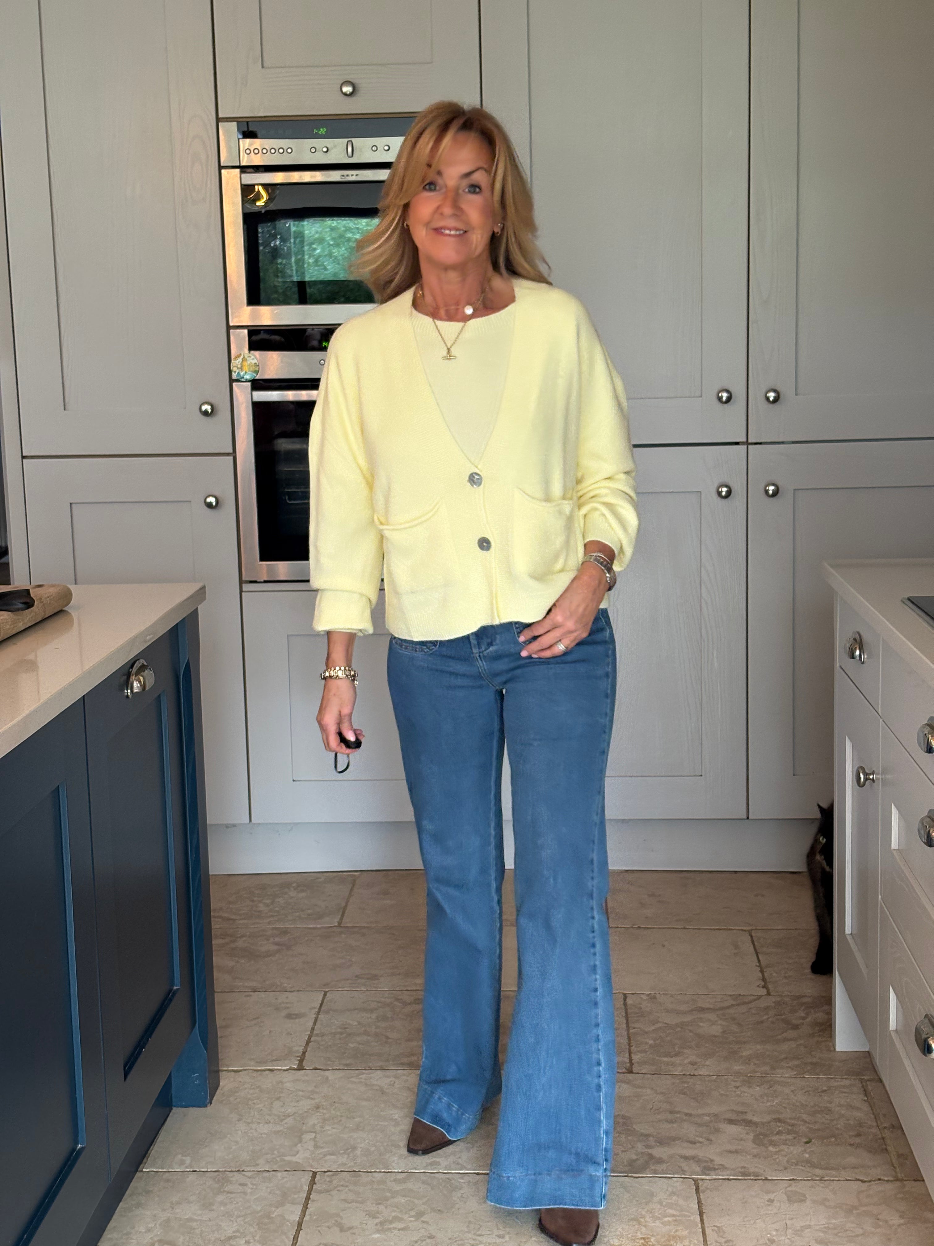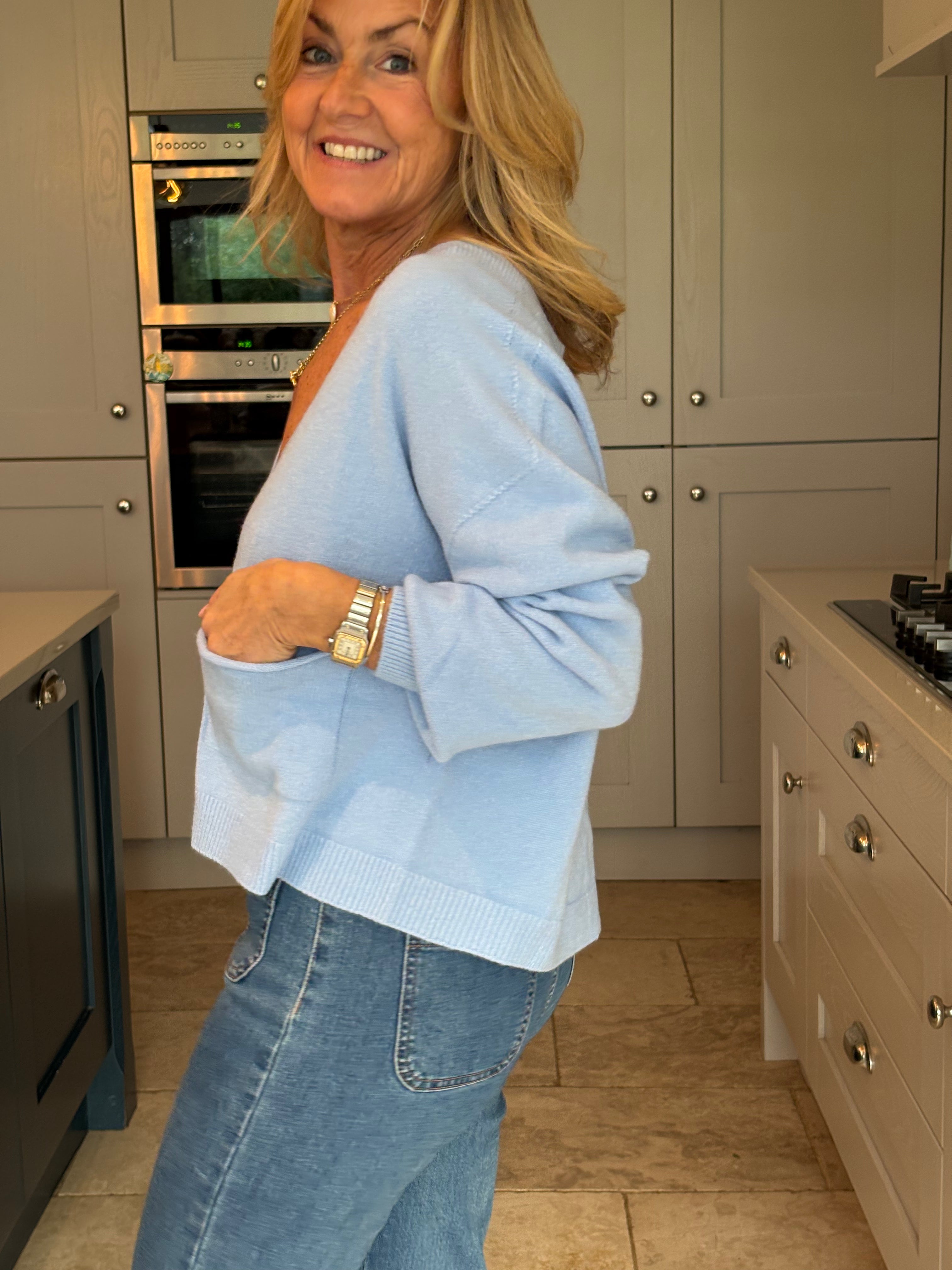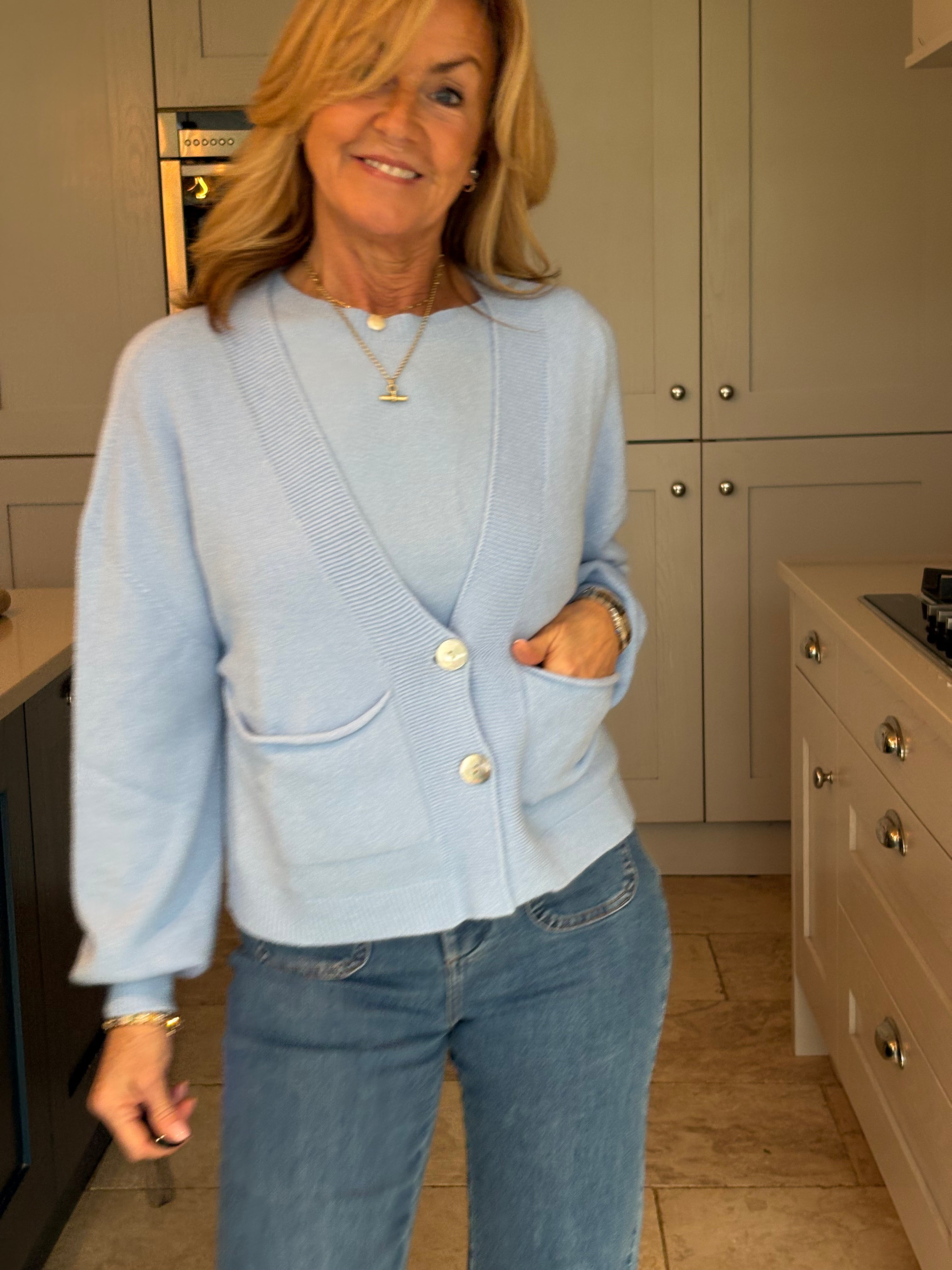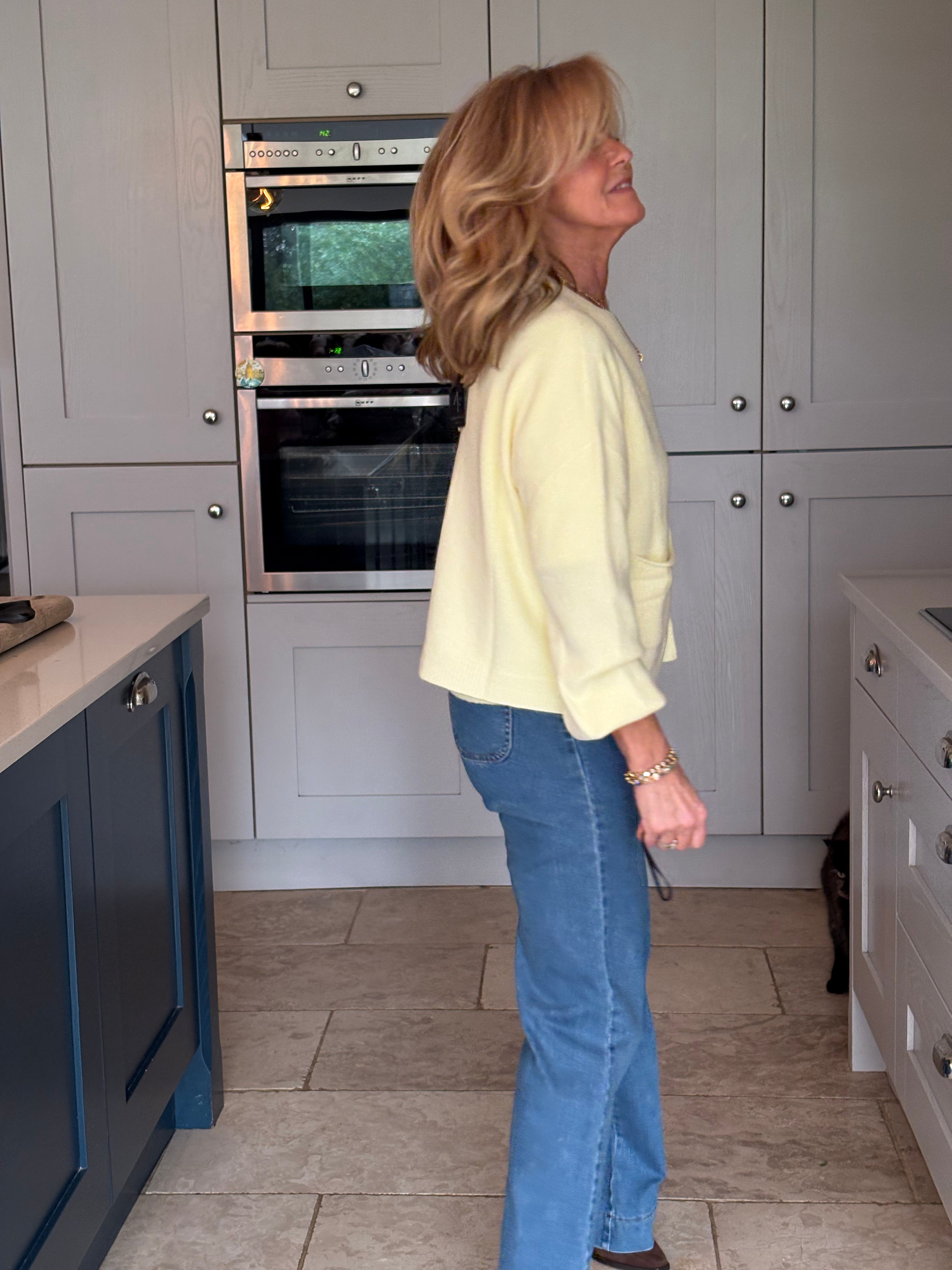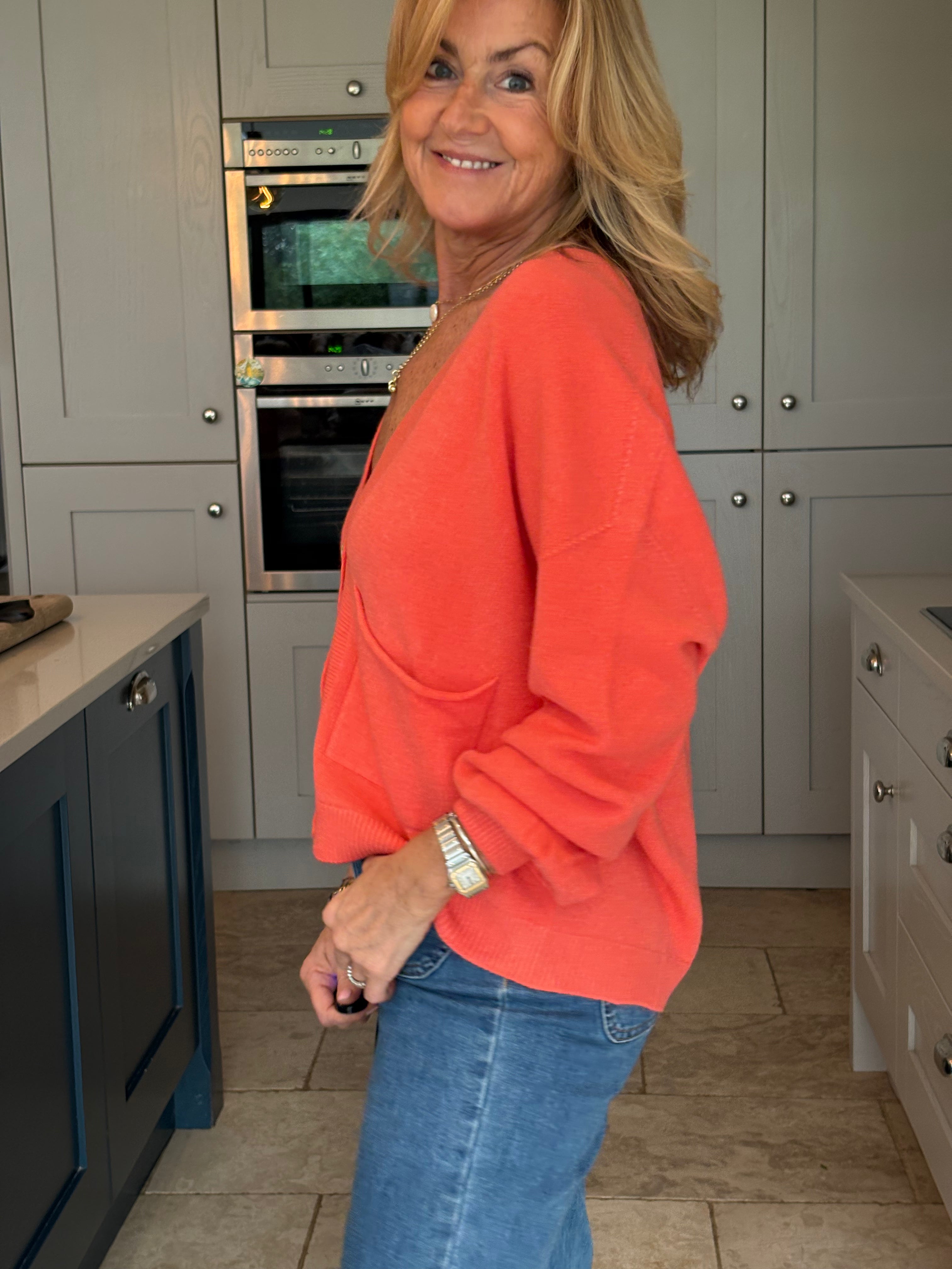 The Ornella is a beautifully soft to touch cardigan. Short and boxy in style with a deep rib trimmed neckline and two front pockets. The Ornella does not contain any wool. Made in Italy from viscose, polyester and polyamide. It is a one size cardigan and will fit a size 8 - 14.