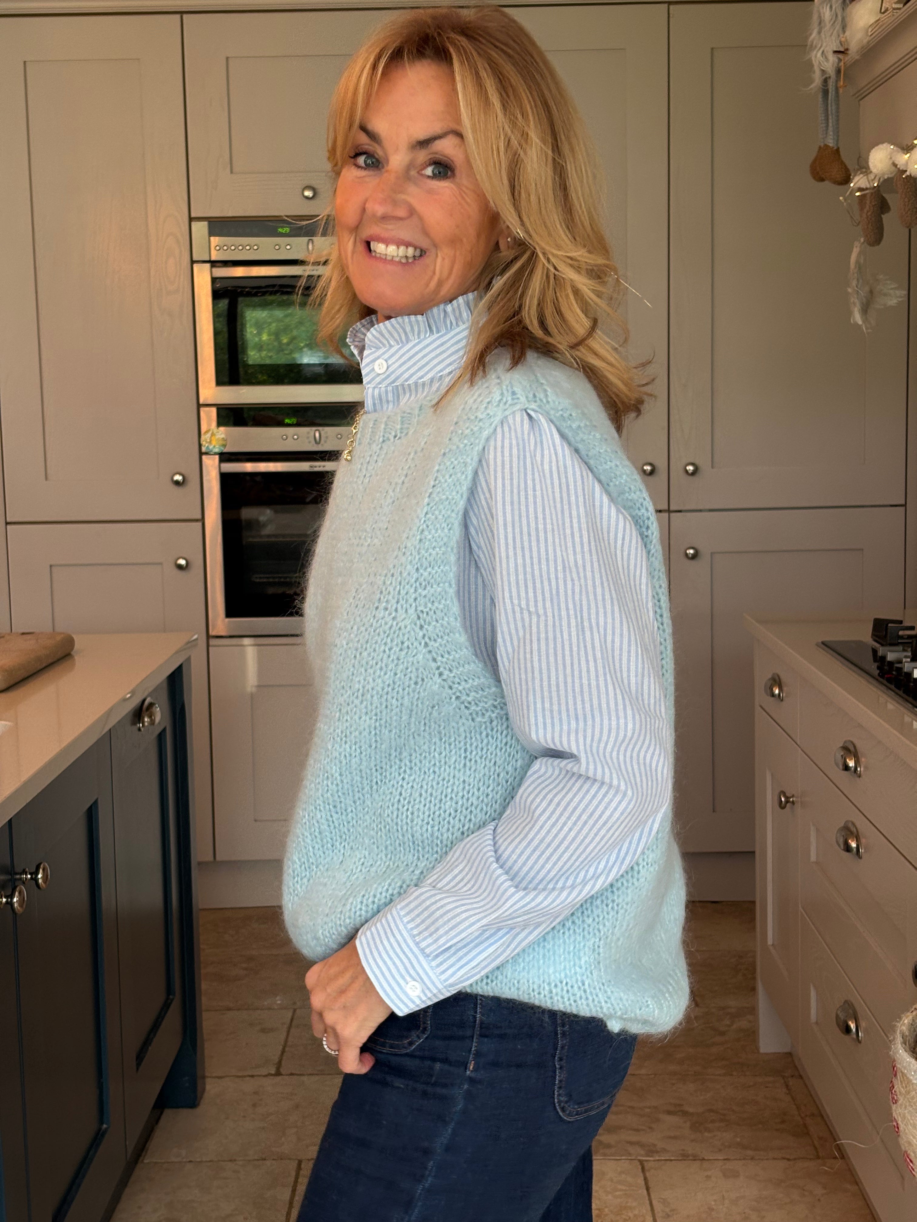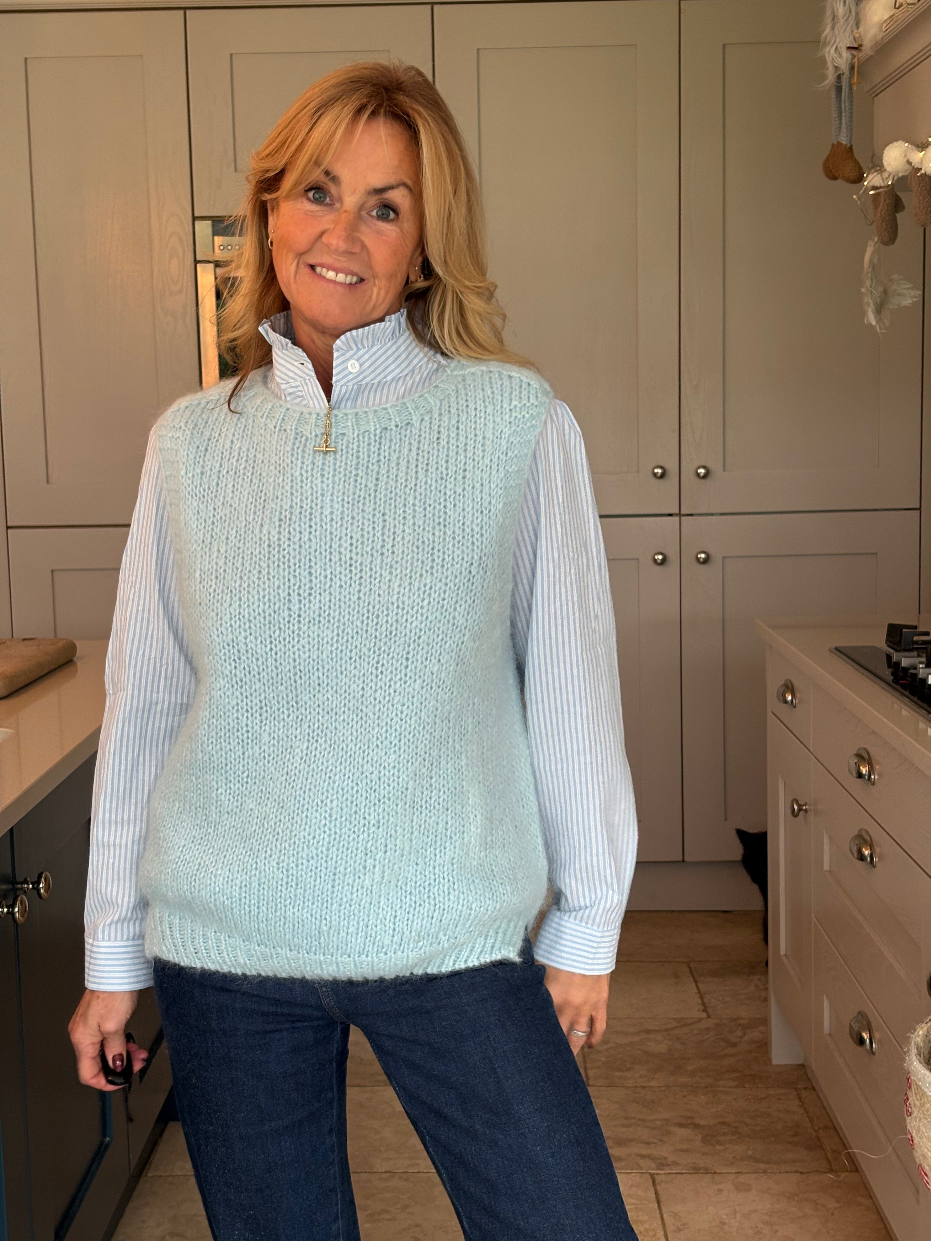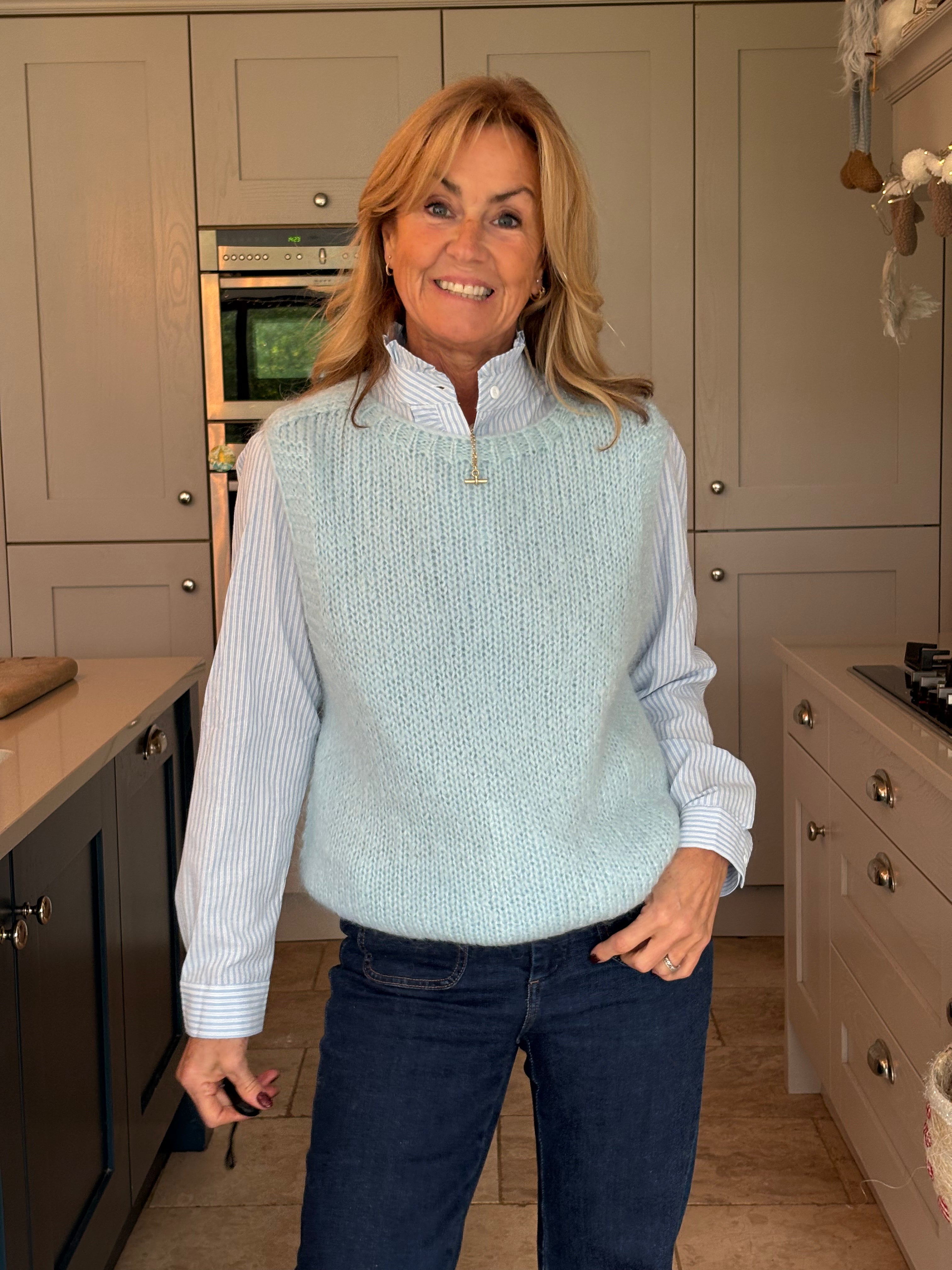 The perfect addition to your spring wardrobe, taking you right through summer, autumn and winter.  Easy to wear on it's own, over a dress, on top of a shirt, tee or jumper or however suits the occasion. One size, 8-16, and in 8 different colours, this piece is a must have.  Ribbed cuffing on the neckline, armholes and hemline, with the back longer than the front and two side splits.  It is loose bodied and fluid enough to French tuck or leave out.