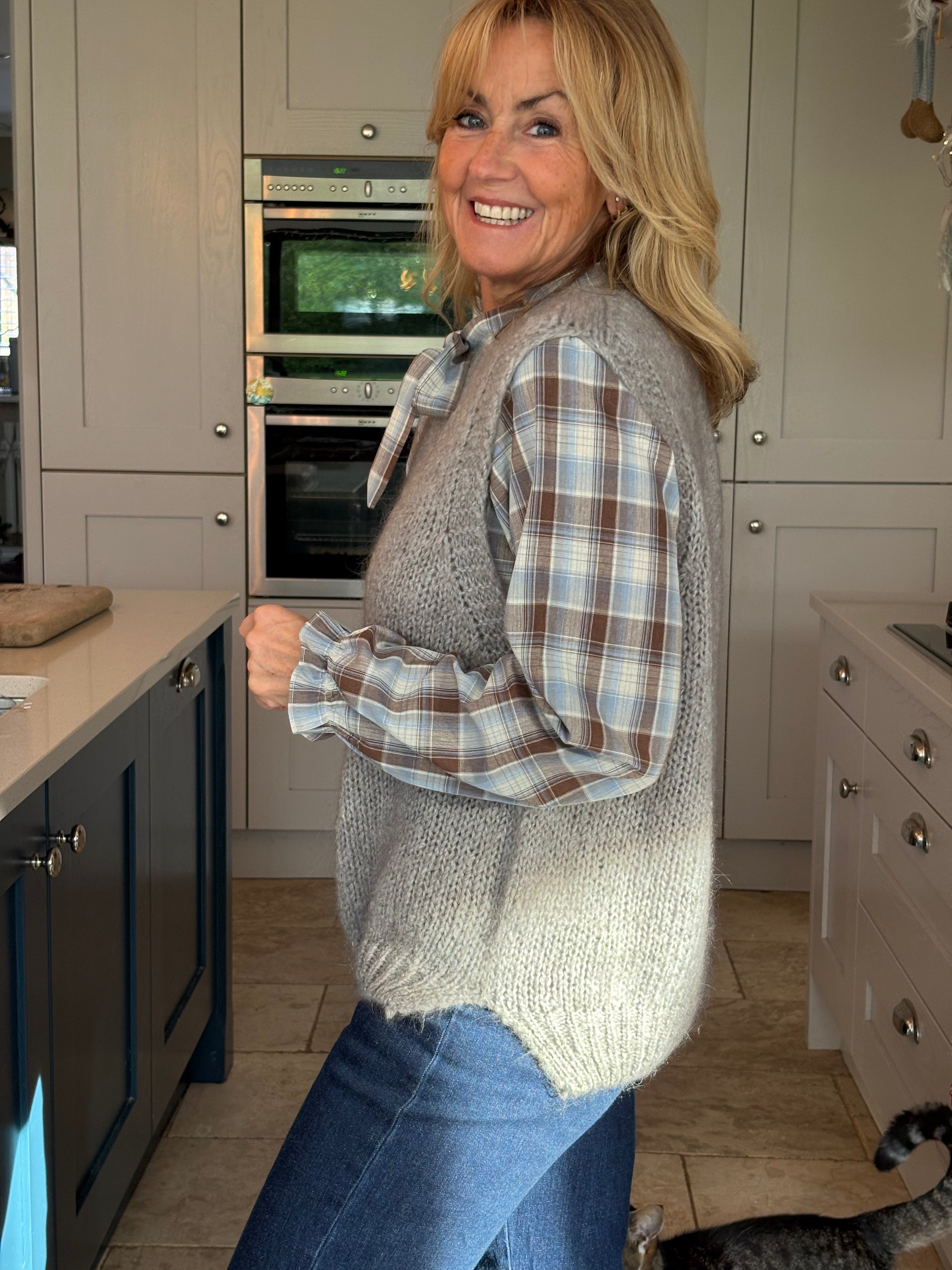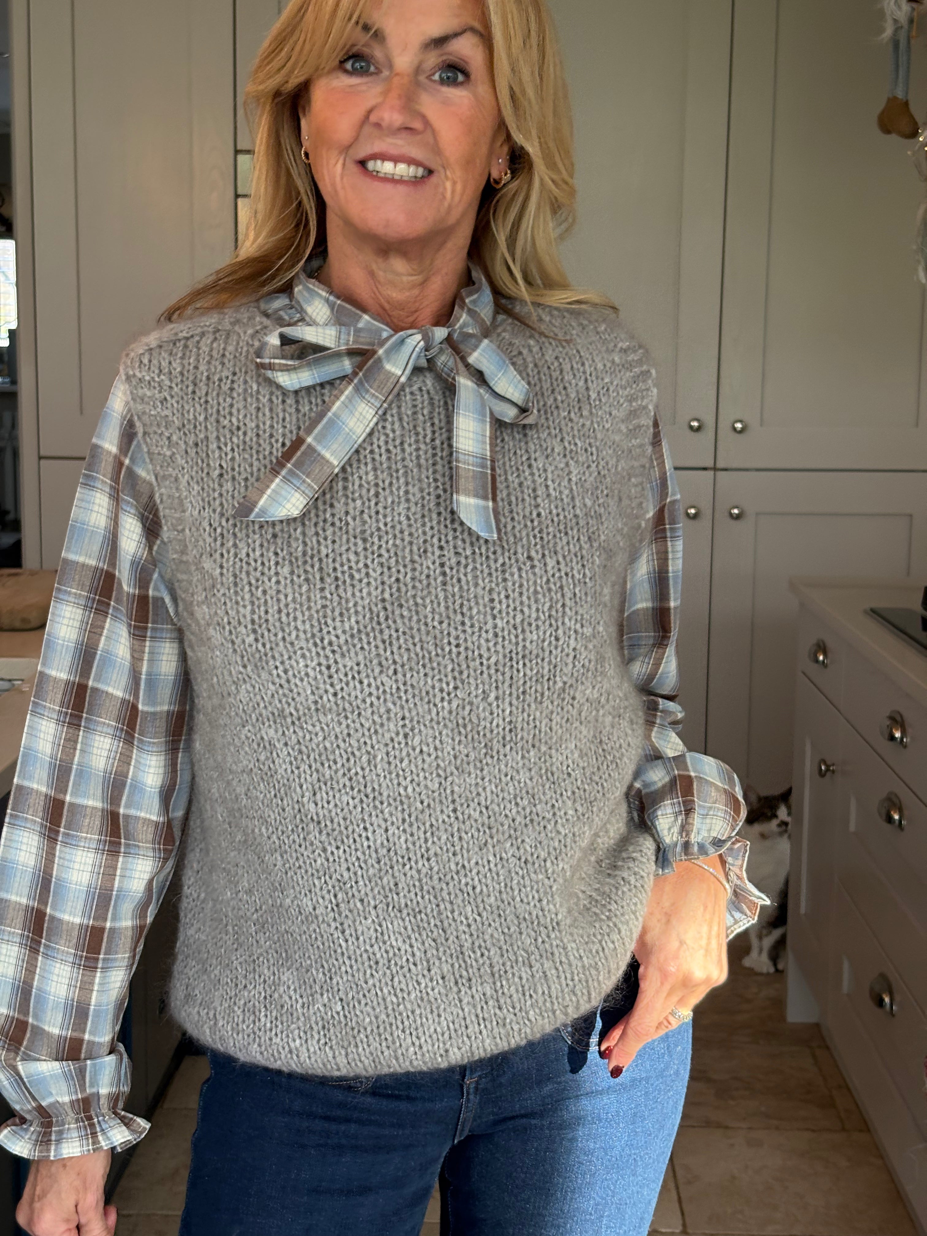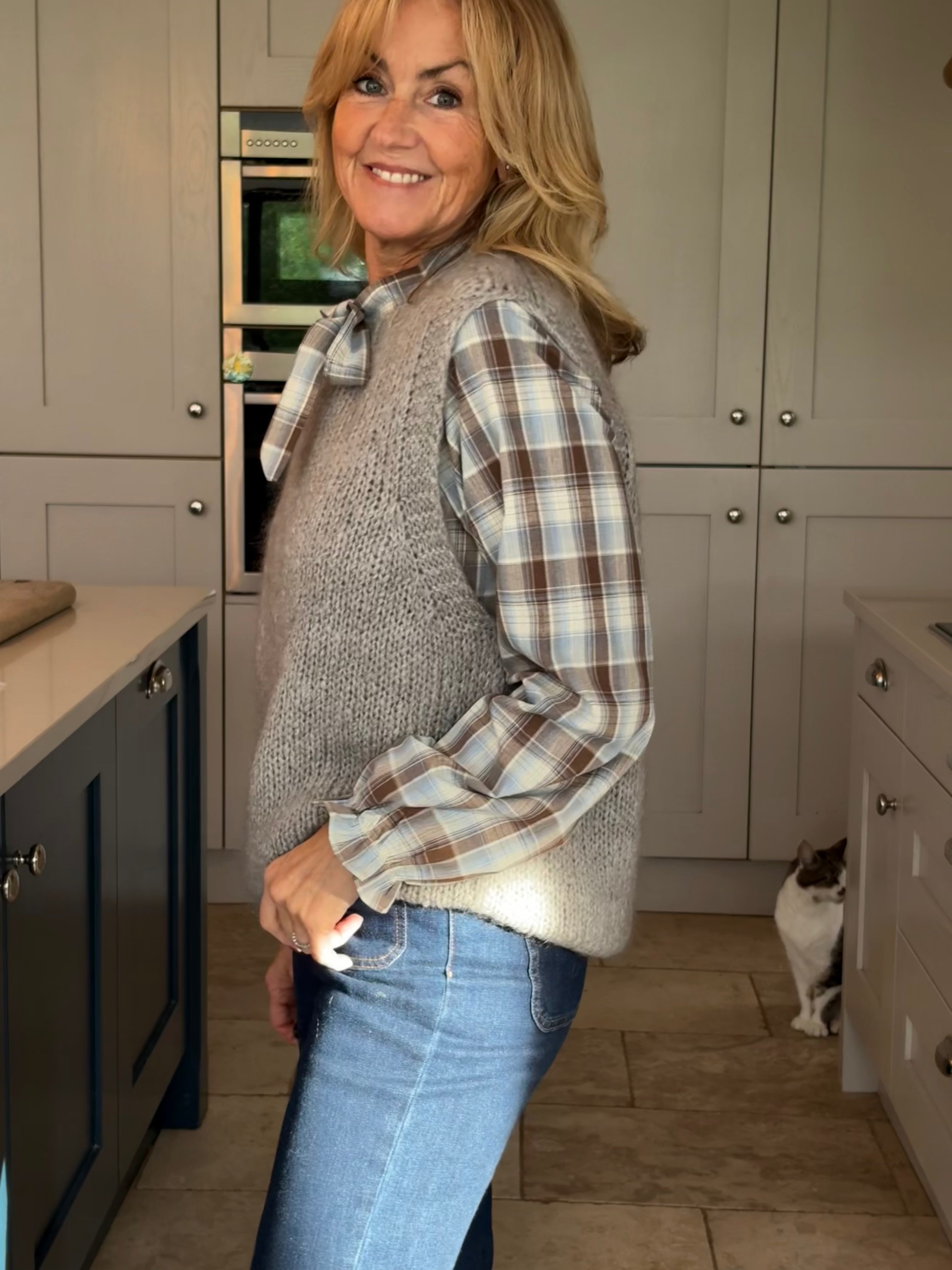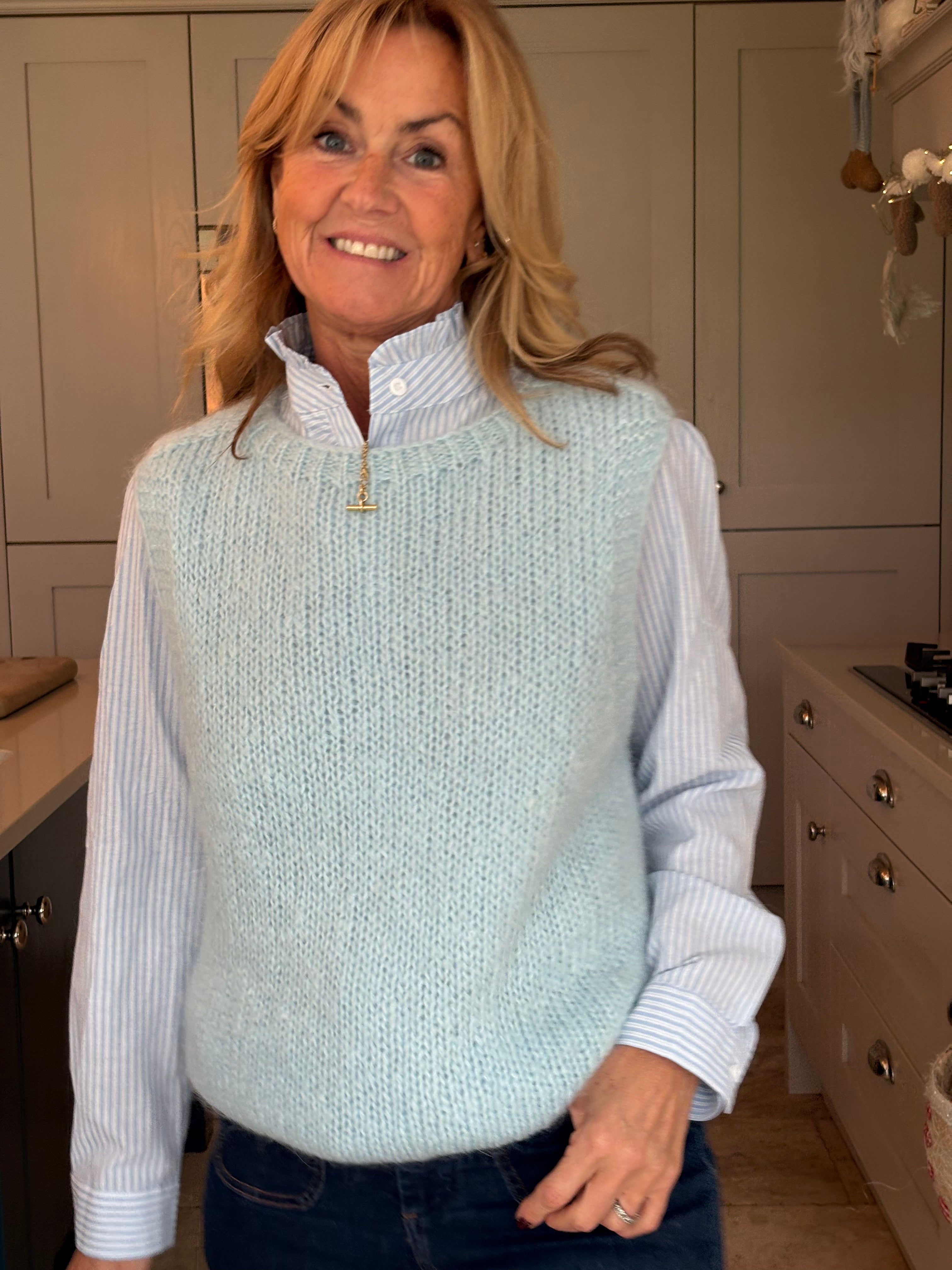 The perfect addition to your spring wardrobe, taking you right through summer, autumn and winter.  Easy to wear on it's own, over a dress, on top of a shirt, tee or jumper or however suits the occasion. One size, 8-16, and in 8 different colours, this piece is a must have.  Ribbed cuffing on the neckline, armholes and hemline, with the back longer than the front and two side splits.  It is loose bodied and fluid enough to French tuck or leave out.