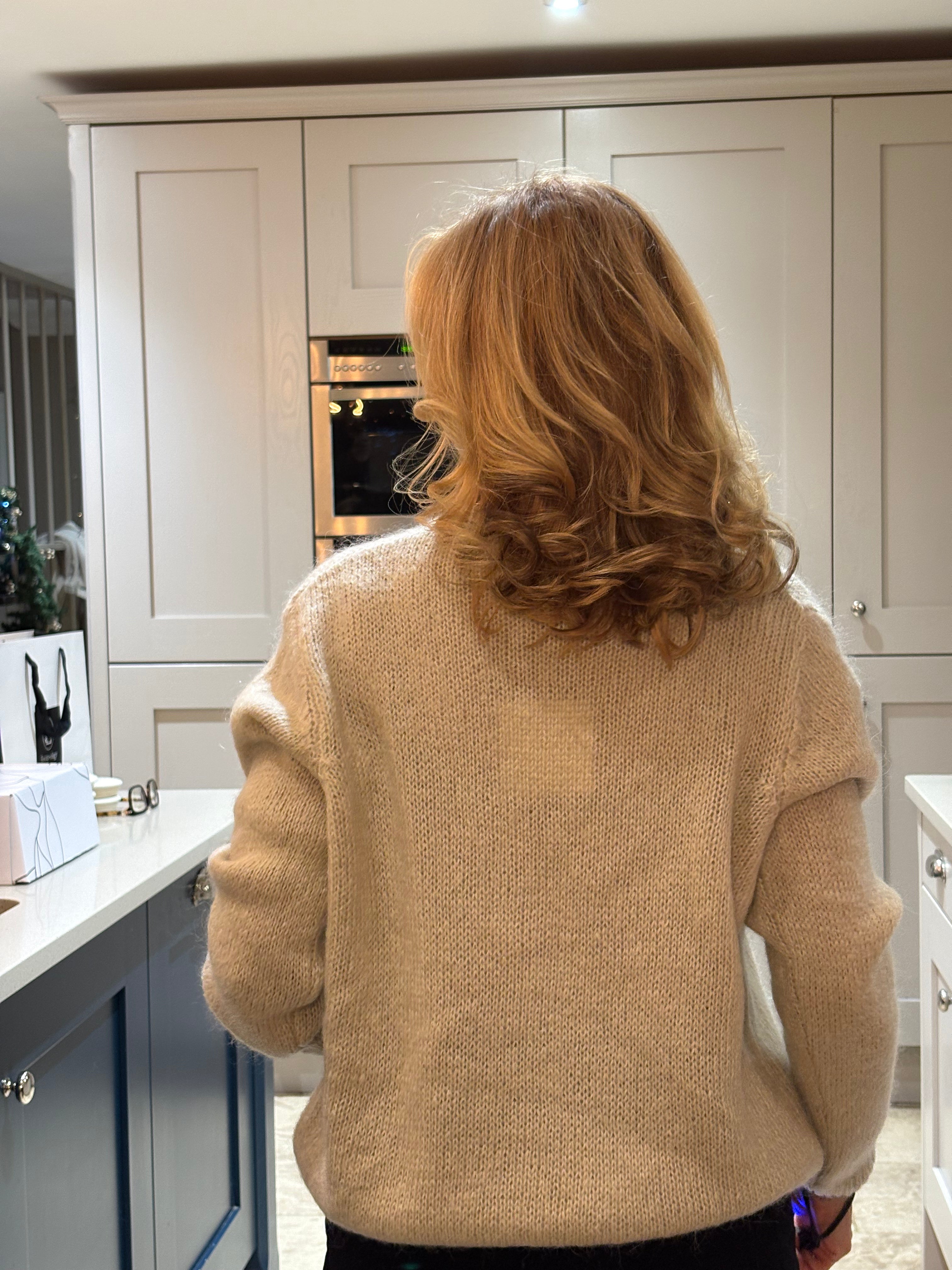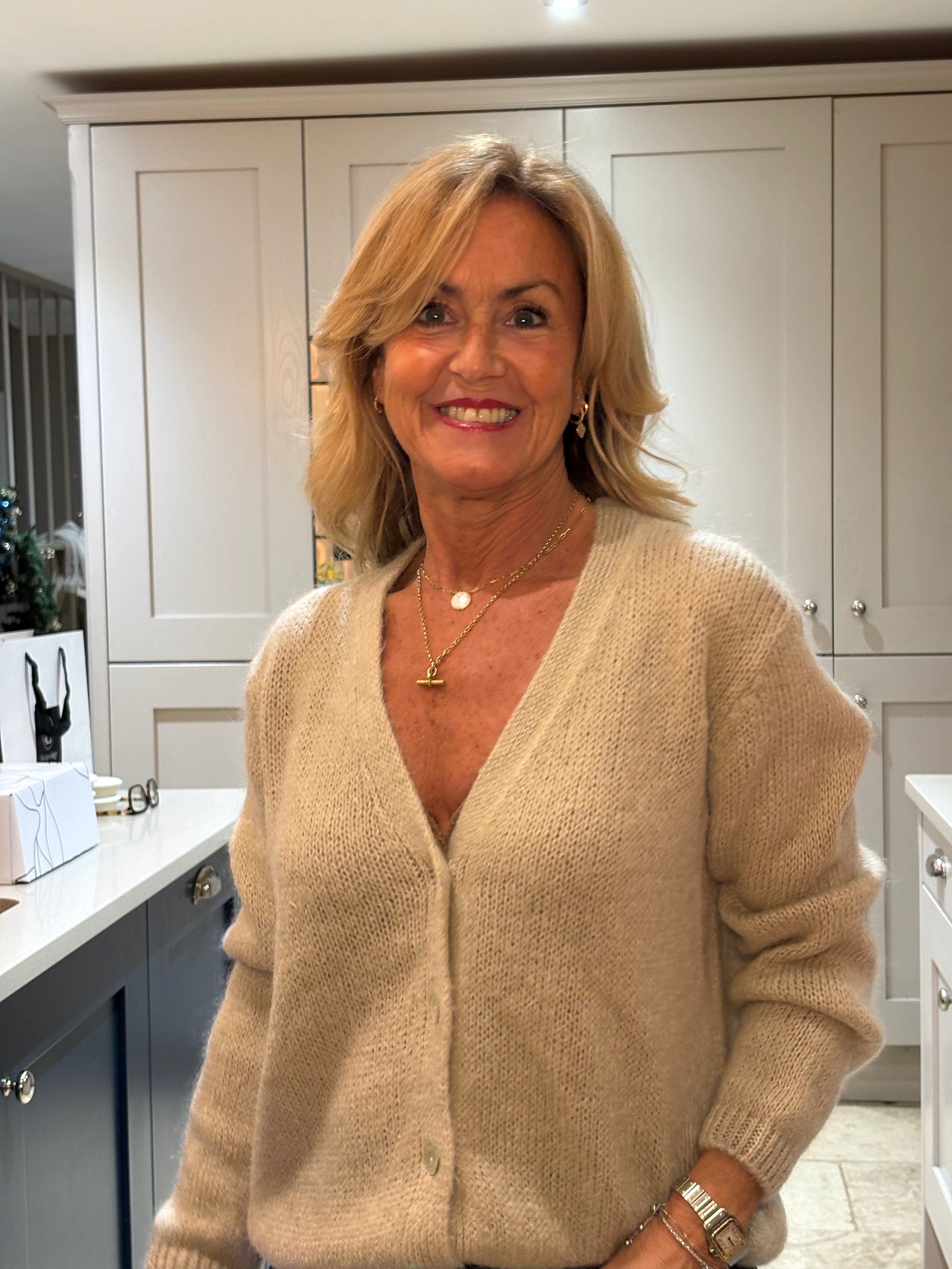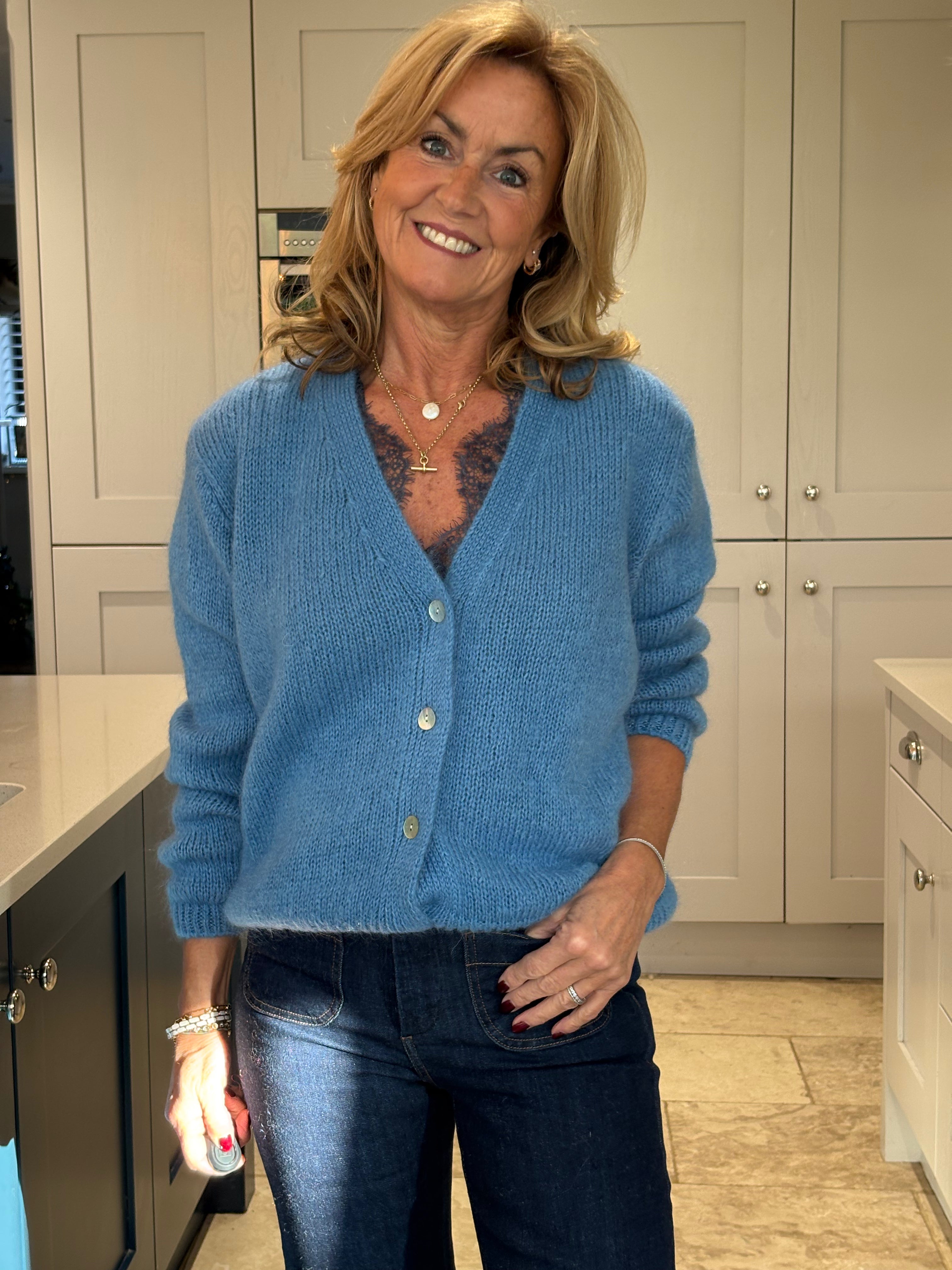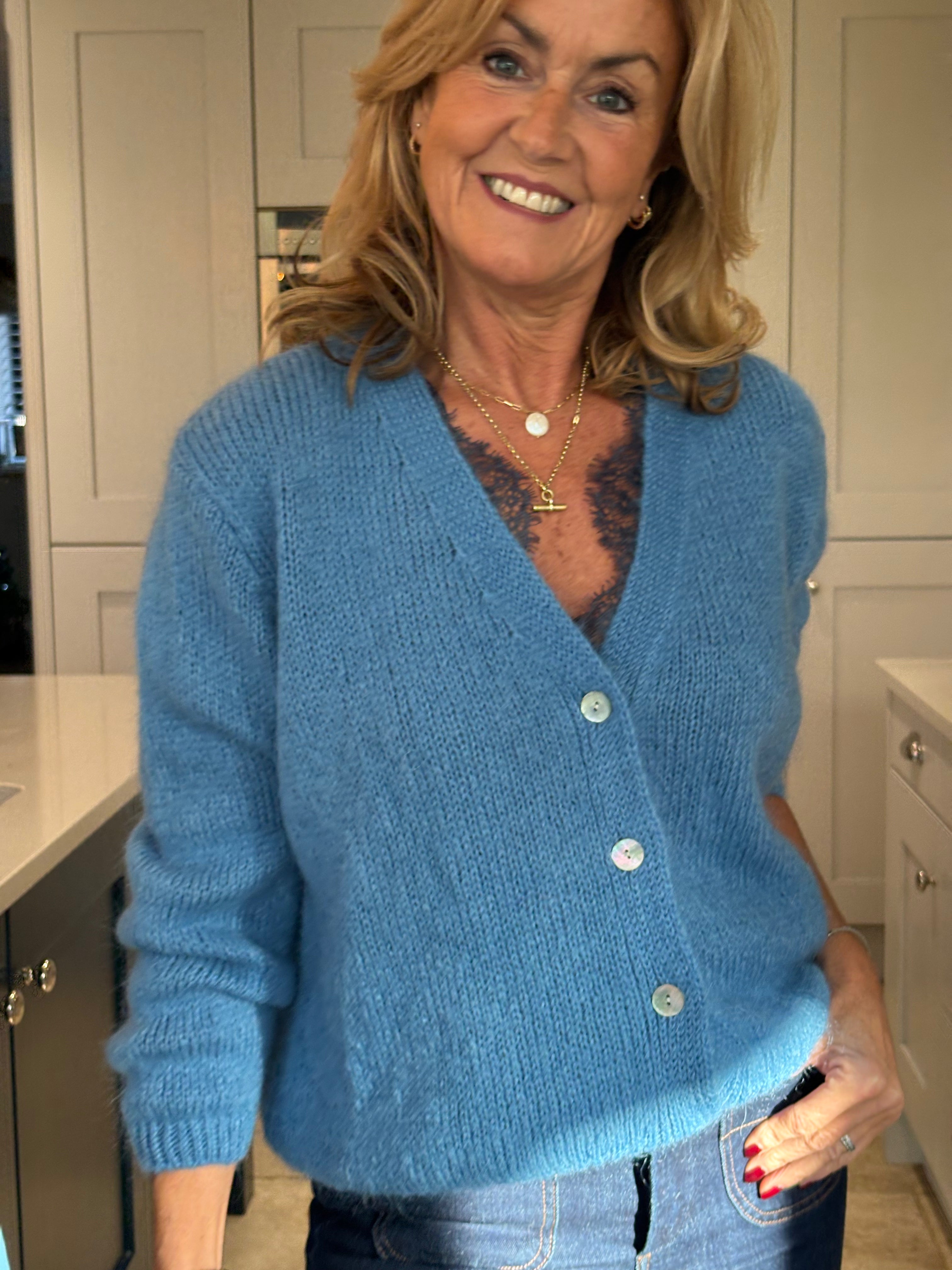 A gorgeous soft and slouchy, loose knit mohair mix cardigan with a deep V neckline, making it veratile.  Pair it wirh the Charli cami with the lace trim to dress it up with a skirt or smart trousers,  Wear it with a pair of jeans and a shirt or on it's own with a pair of leggings.  Versatile and useful.  In 2 pretty colours, blue and tuape.  The Betsy is a one size piece (8-14).