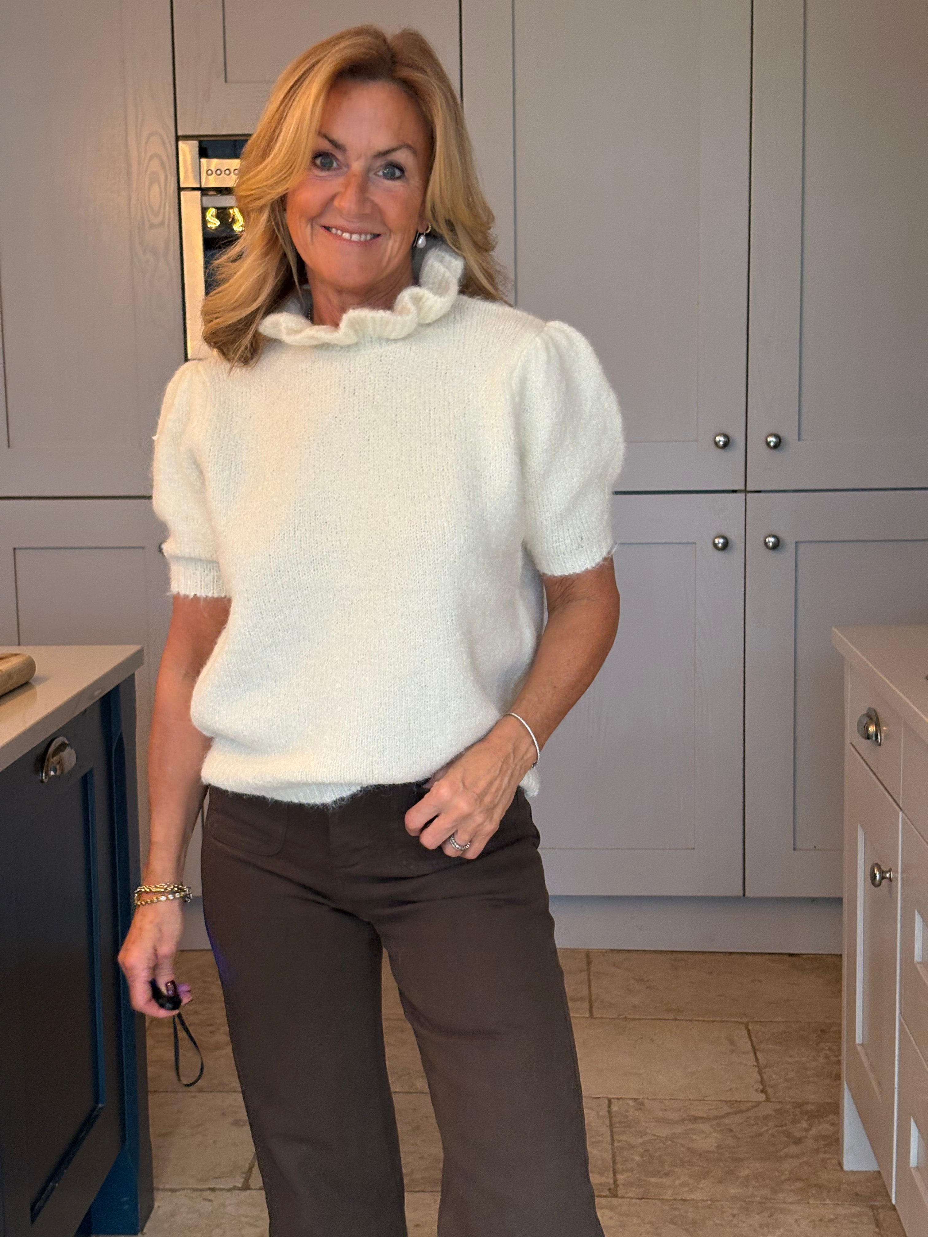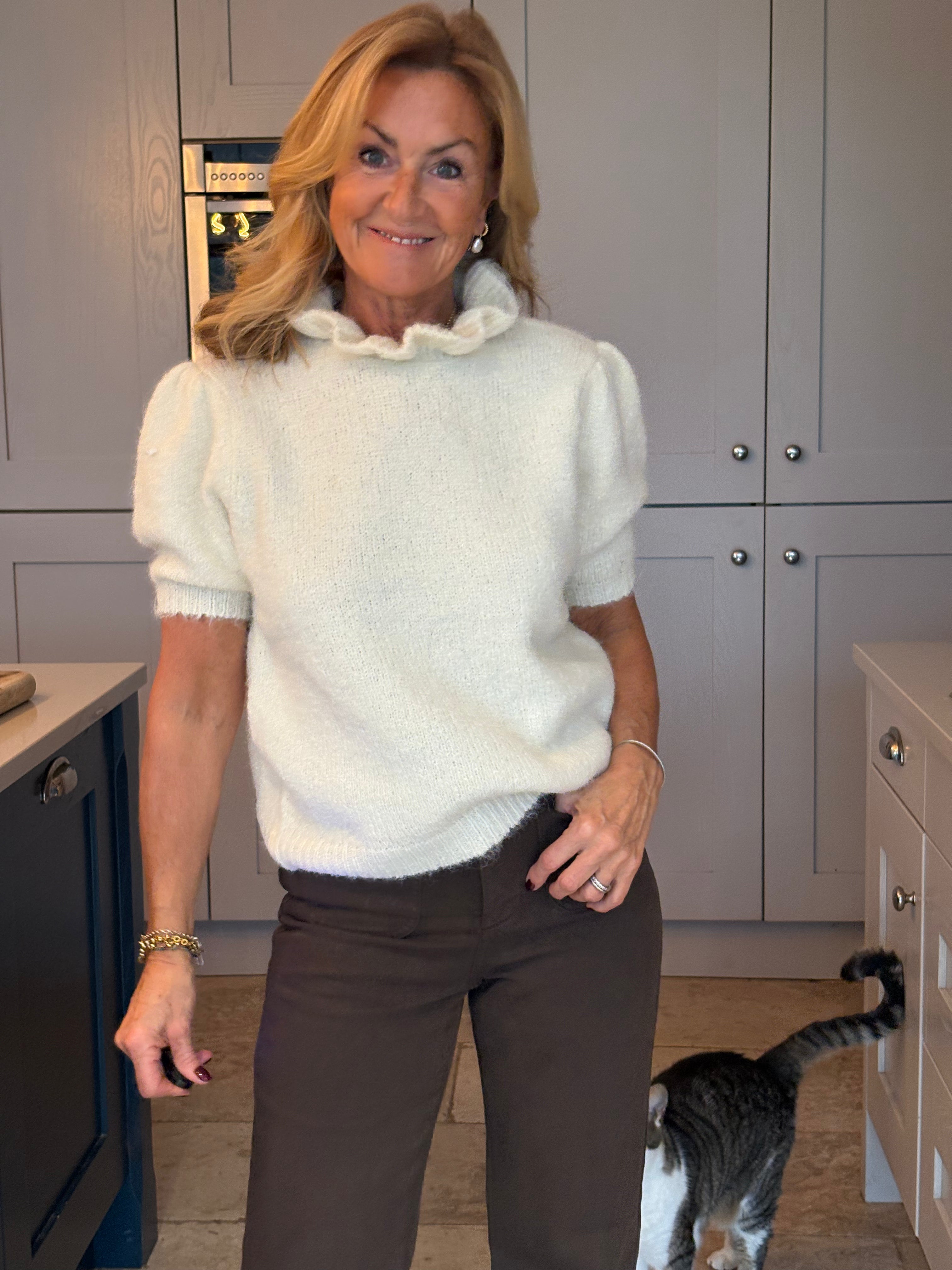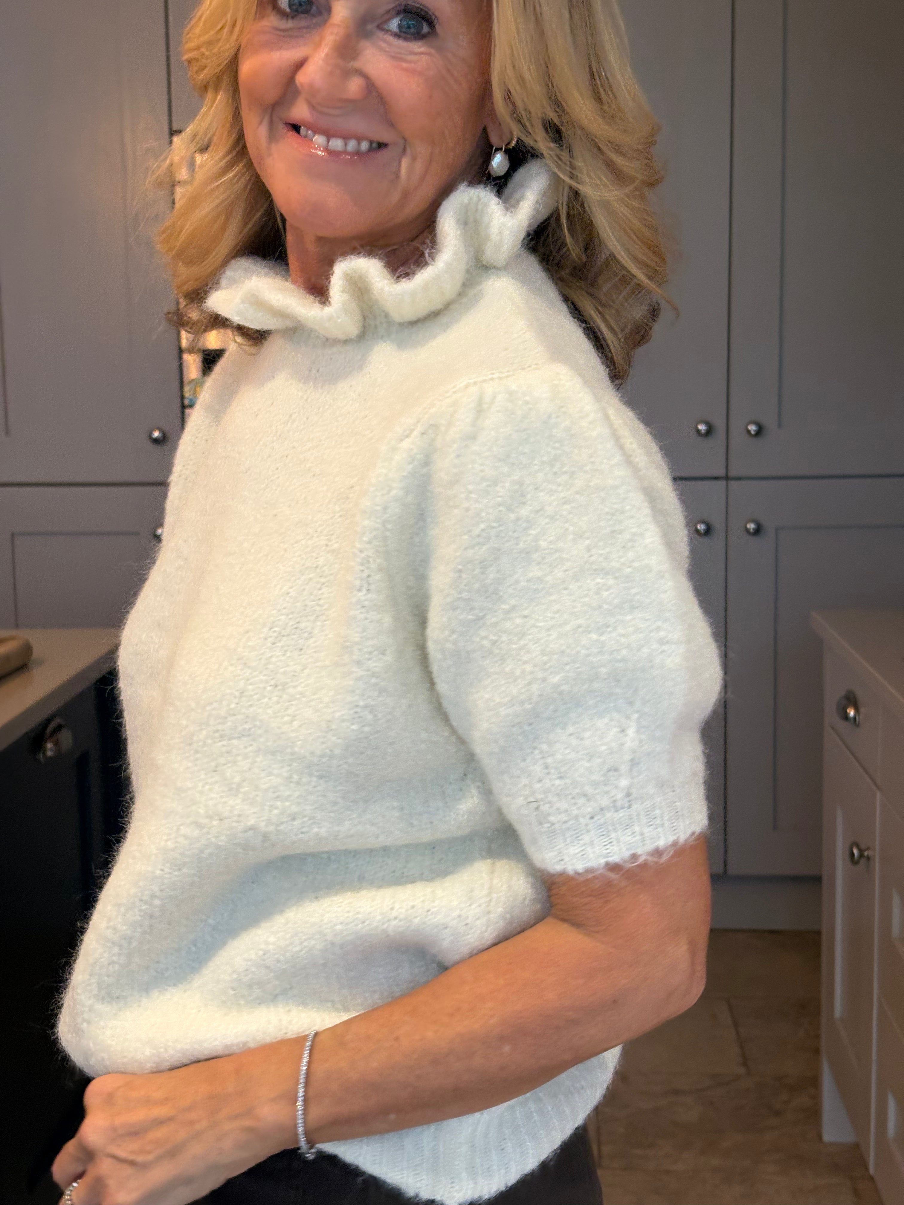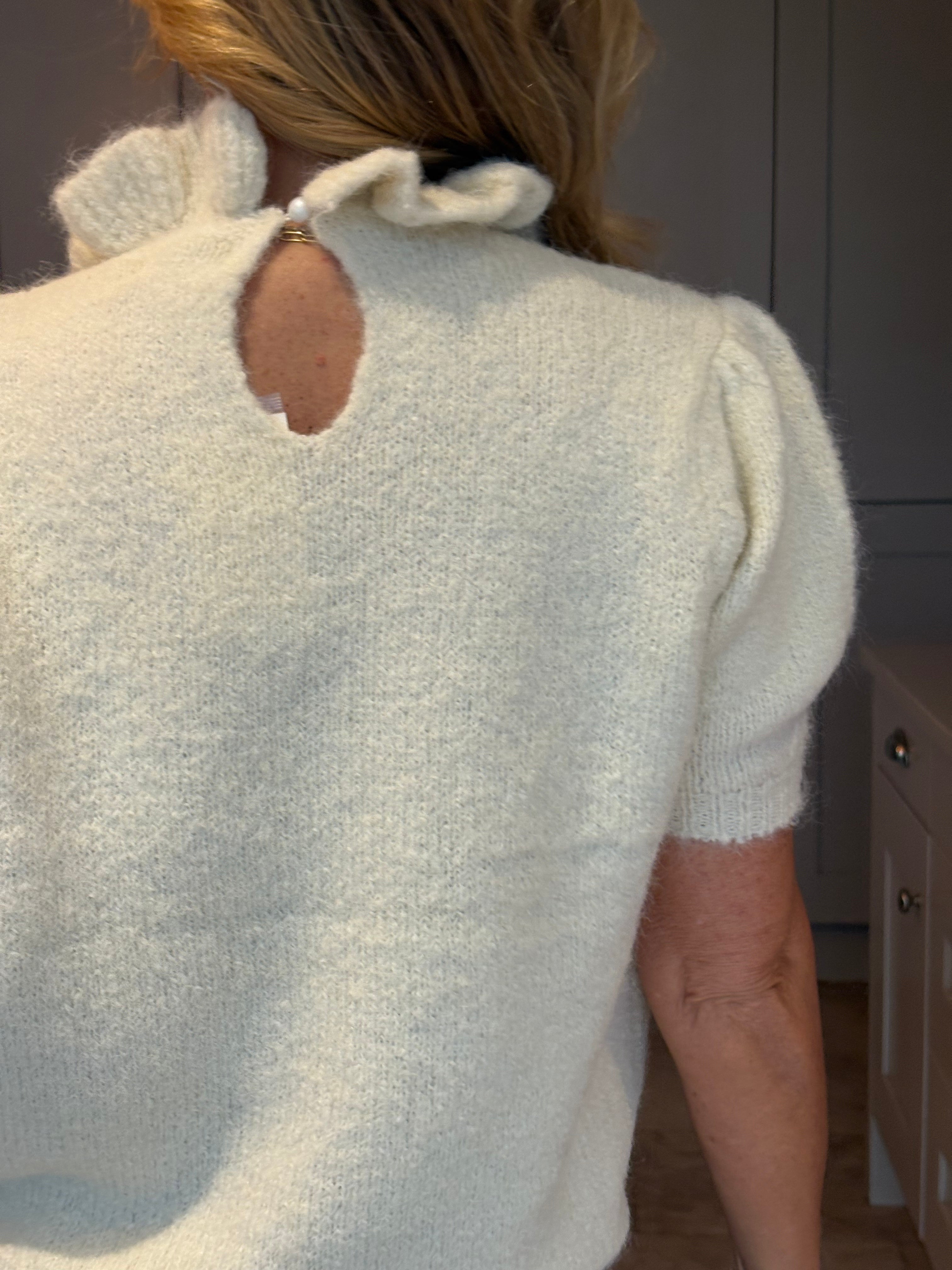 This really fun short-sleeve jumper features a regal-style ruffle neck that adds a playful yet sophisticated touch to its design. Made from warm, soft, and fluffy fabric, it feels gentle against the skin, ensuring comfort throughout the day. Its versatile style makes it perfect for dressing up for a night out or dressing down for a casual day.