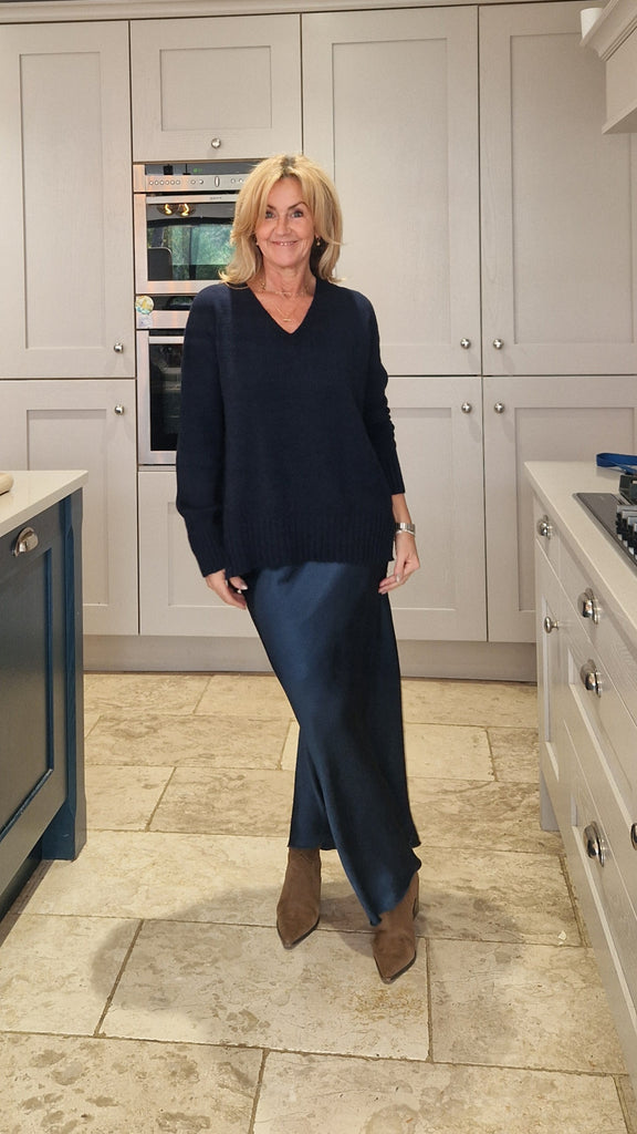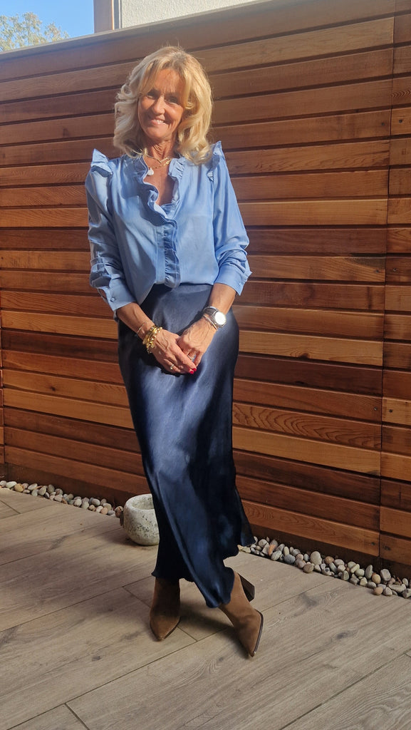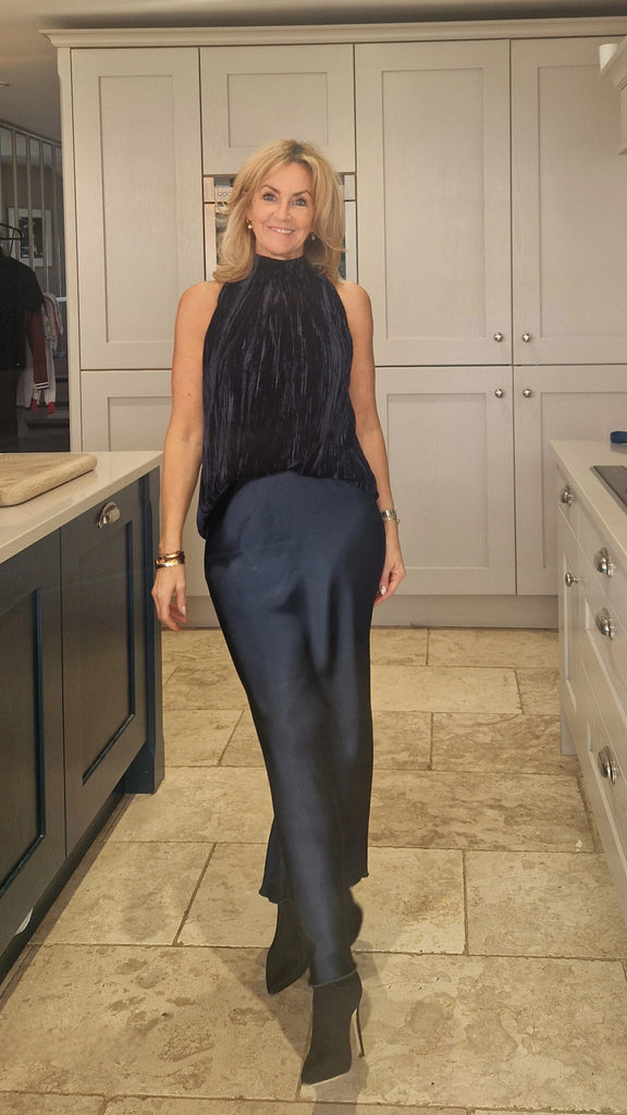 Step out in style with this stunning long satin skirt, designed for elegance and versatility. Featuring a pretty elasticated waist for comfort, its bias-cut silhouette flatters and accentuates a beautiful shape.