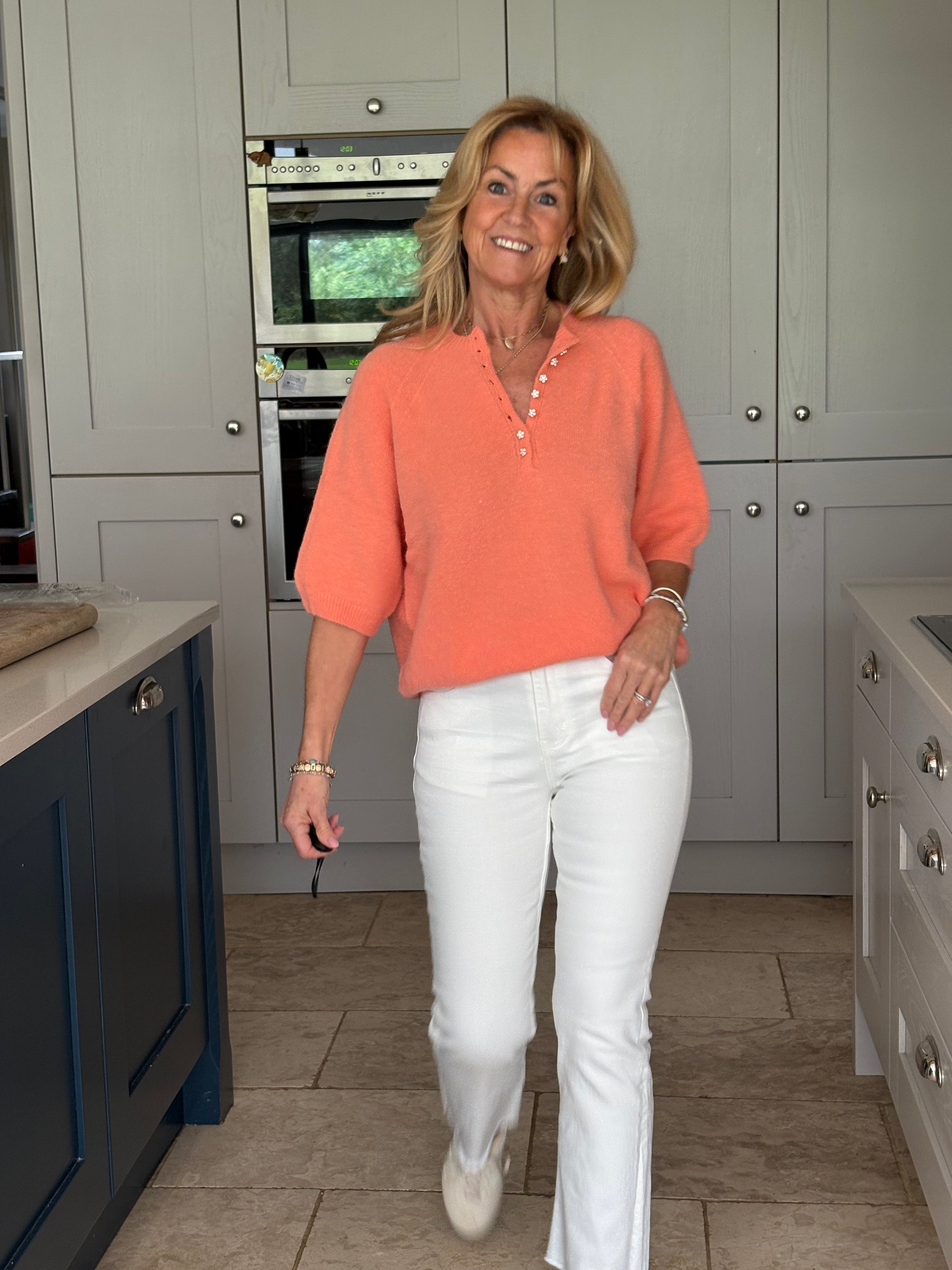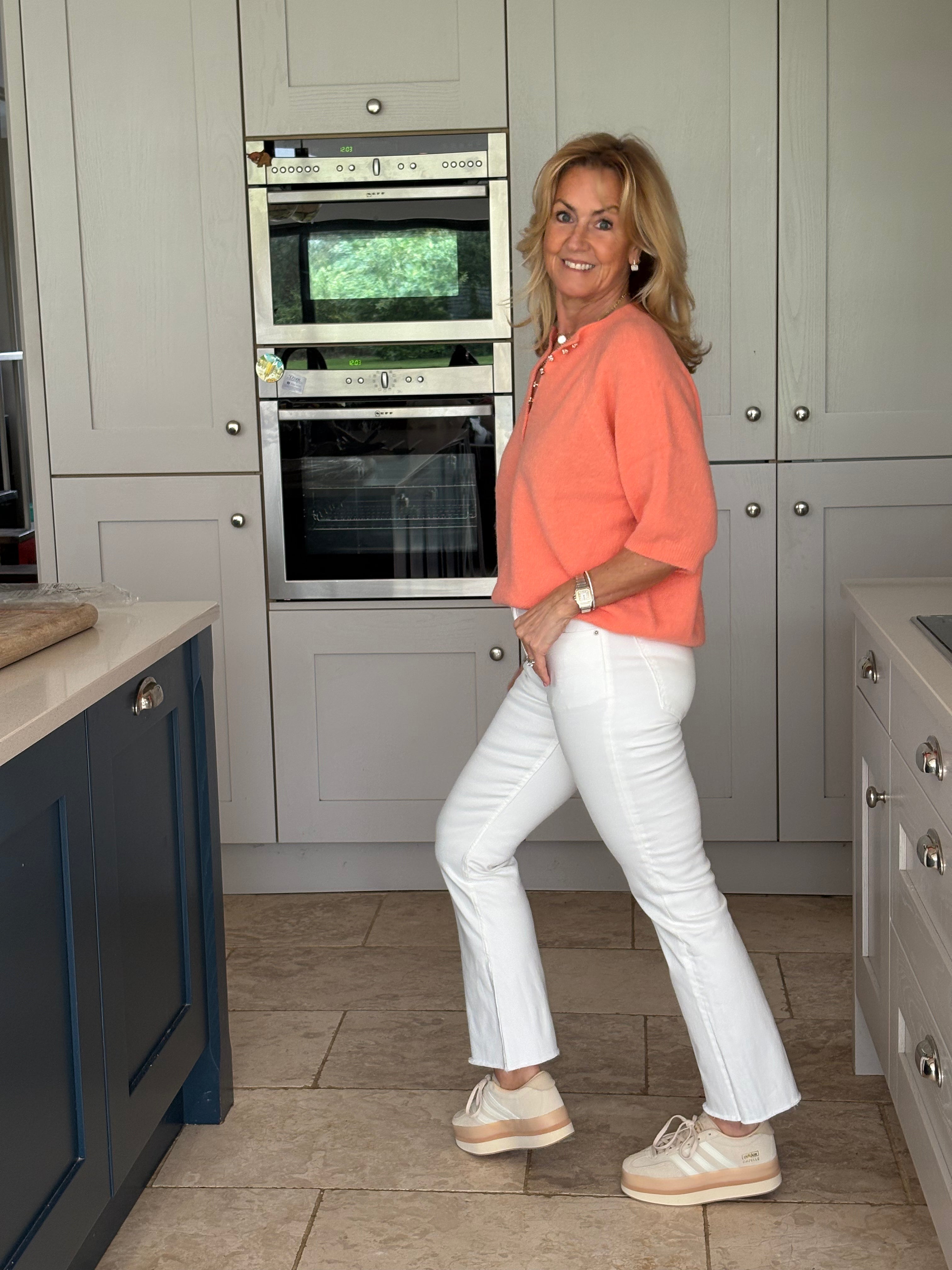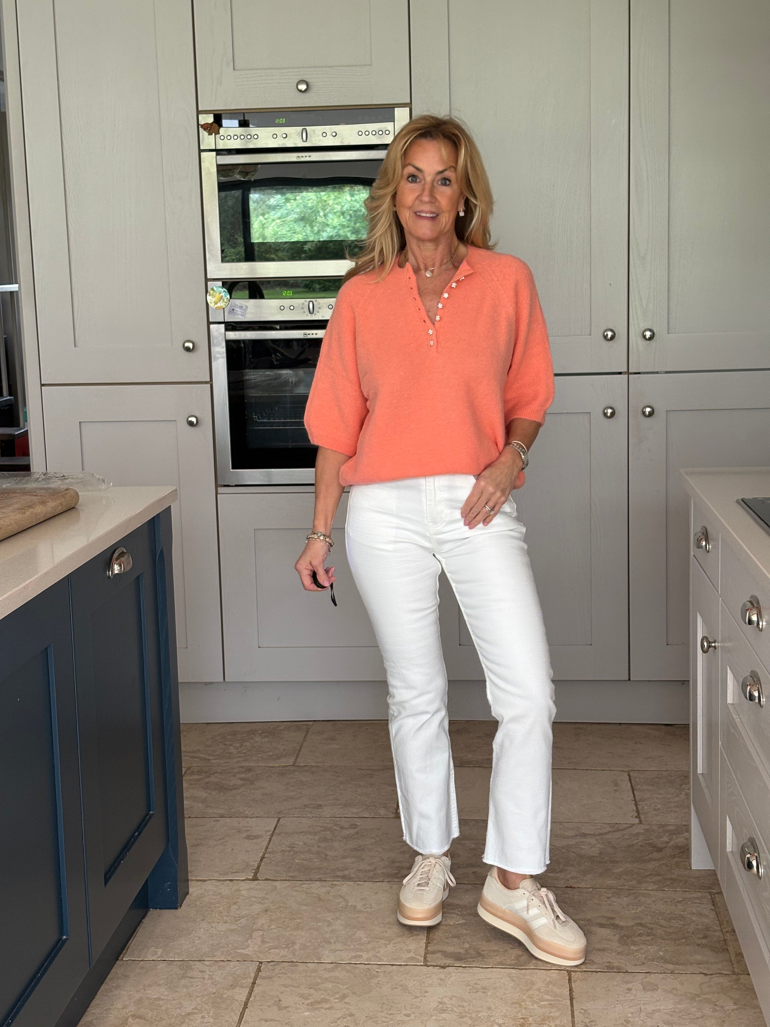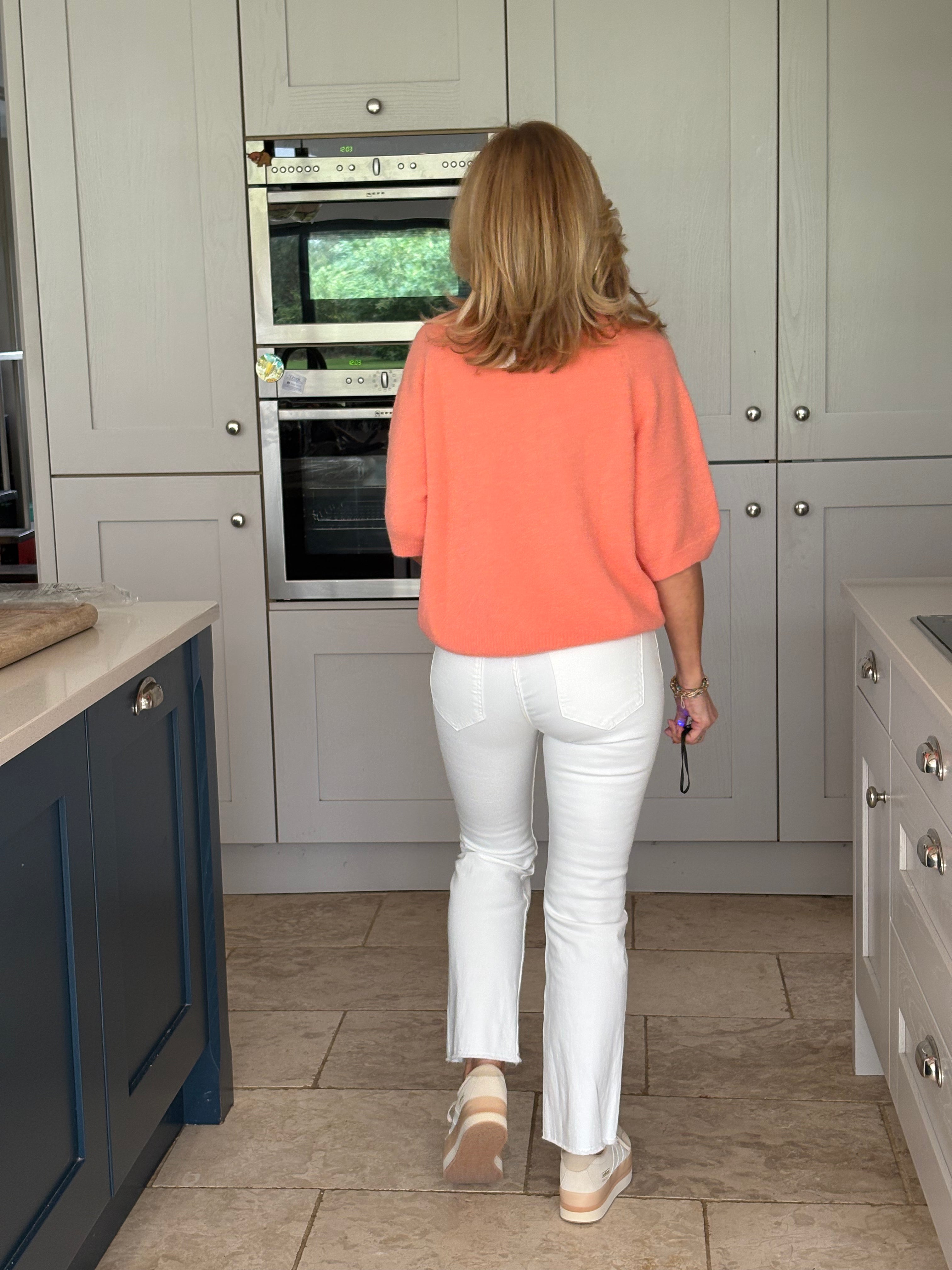 A great pair of tight fitted white kick flare ankle skimmer jeans with a raw fringed hemline. Two front and two back pockets. Perfect for the summer but also great with boots during the winter months.