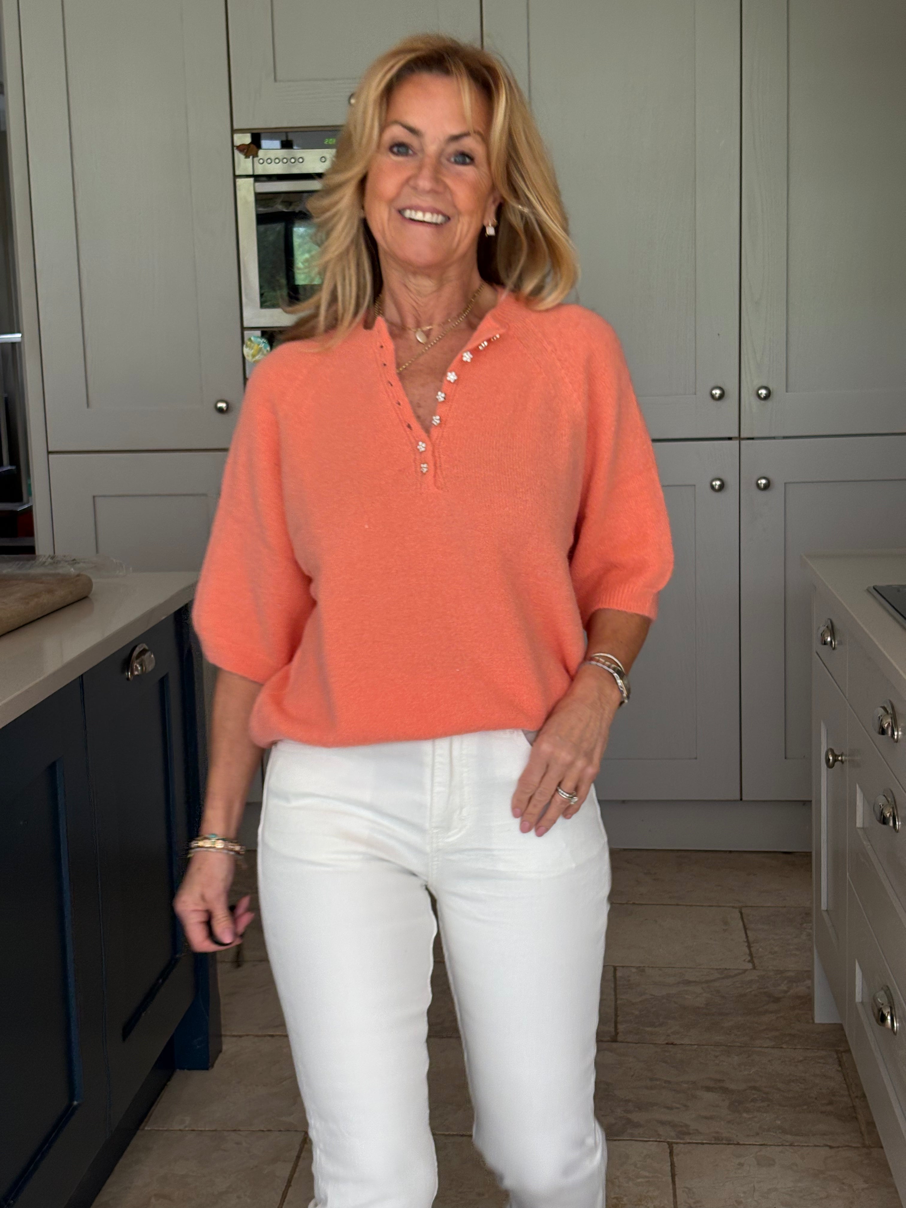 Lorraine is 5'4" and a size 8 and is wearing the 8.
